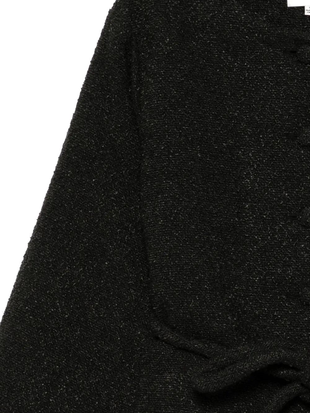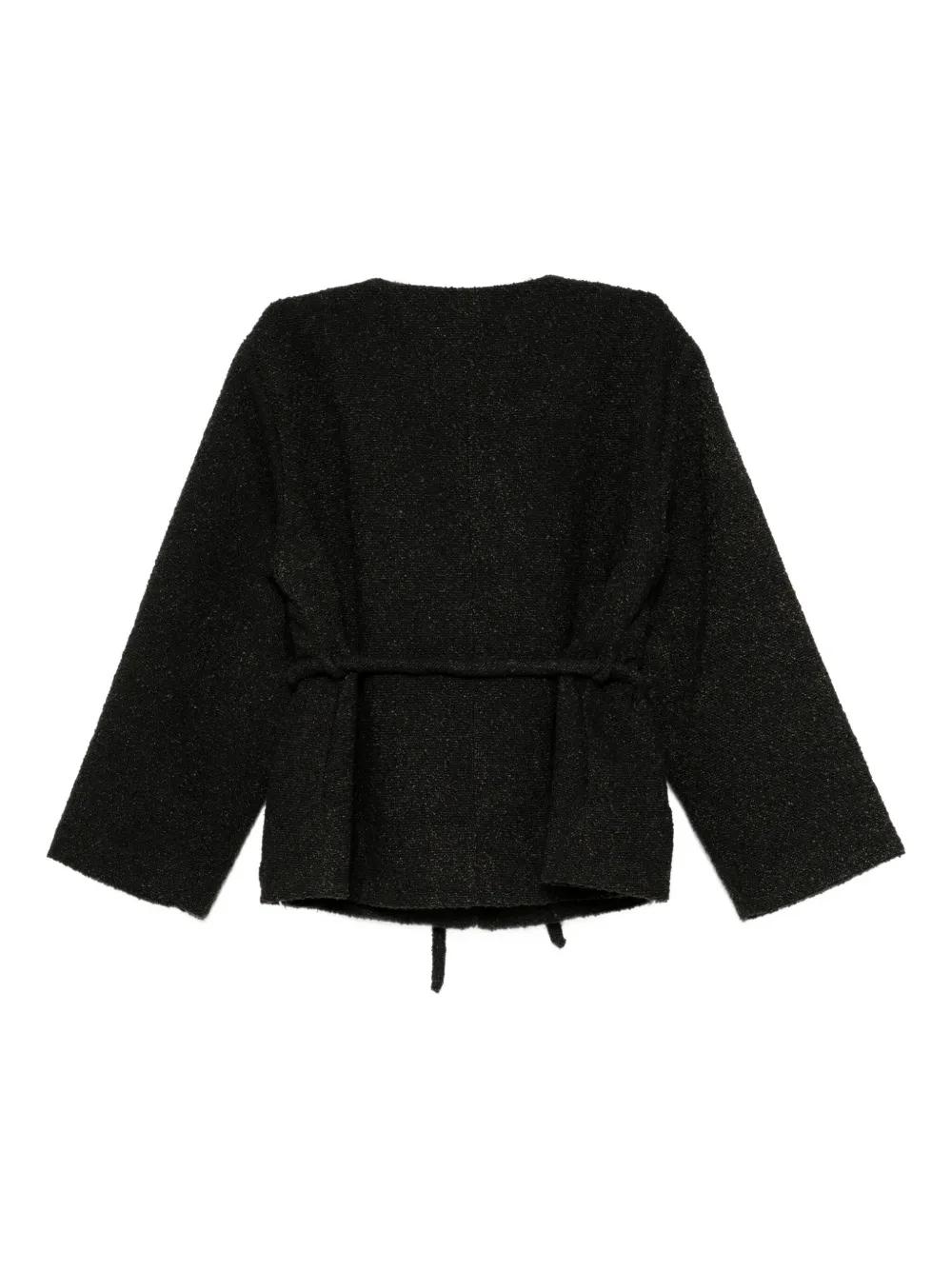 dark grey front button fastening detachable adjustable waist strap crew neck long sleeves