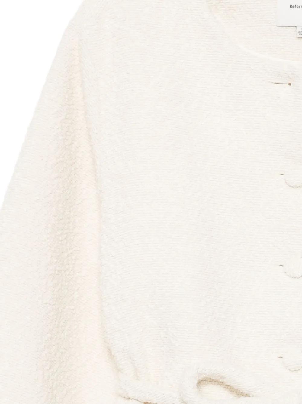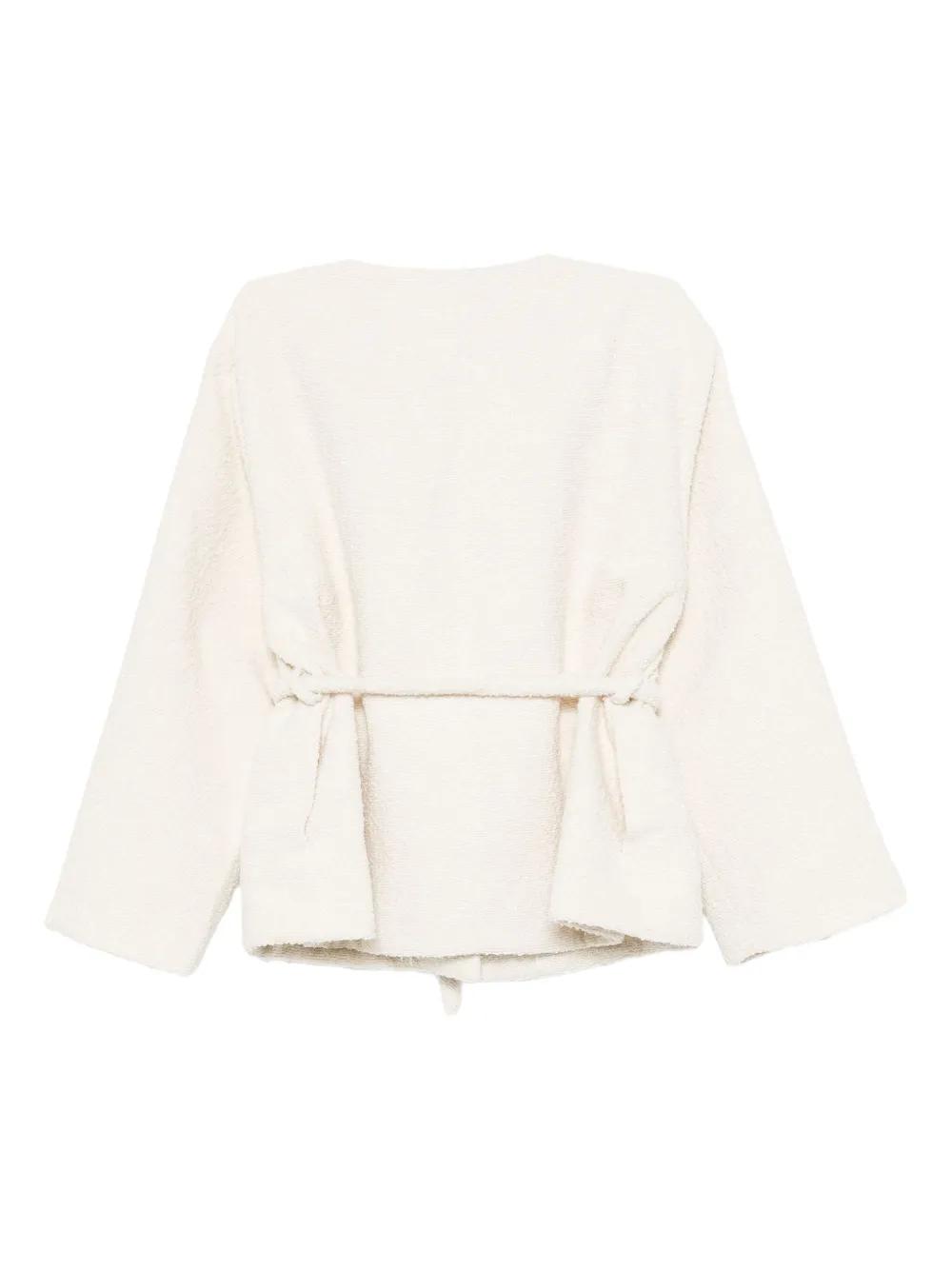 cream front button fastening detachable adjustable waist strap crew neck long sleeves