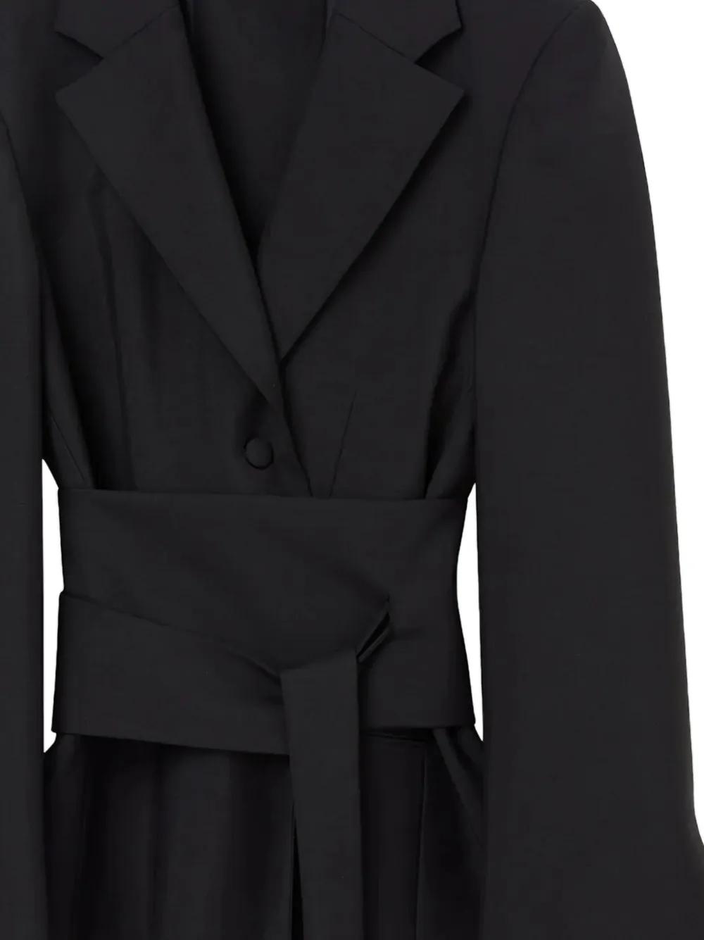 black wide sleeves belted waist button fastening notched lapel straight hemline