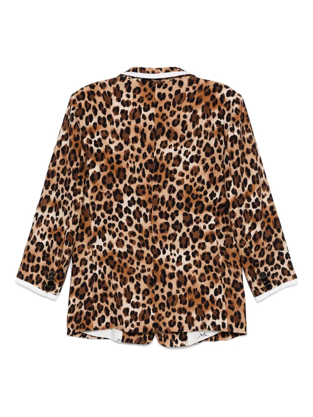 light beige/animalier brown/black crepe texture leopard print front button fastening contrasting trim notched lapels shoulder pads long sleeves faux-buttoned cuffs dart detailing two front flap pockets American rear vent logo-jacquard lining curved hem
