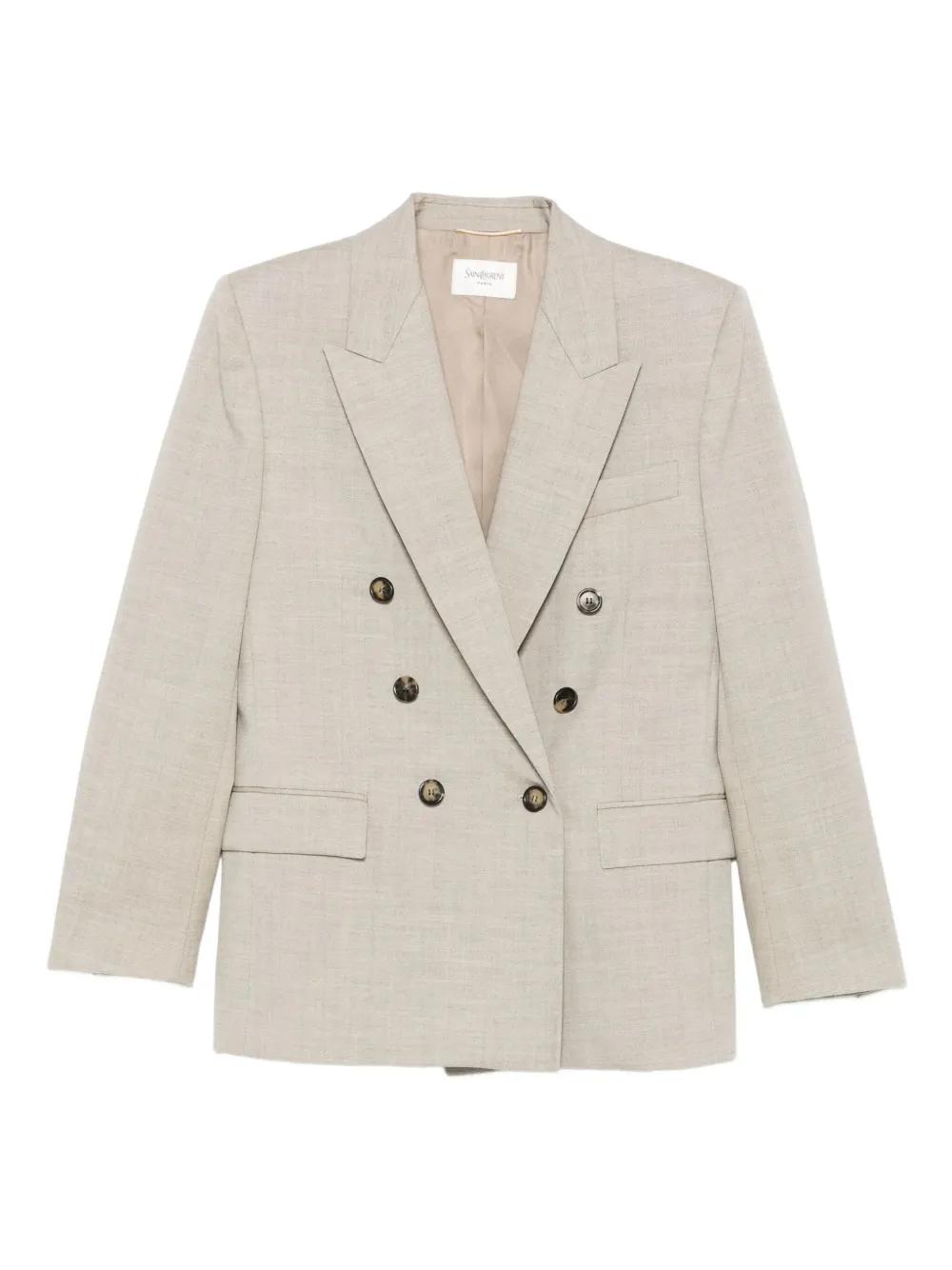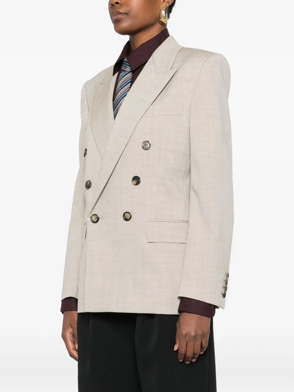 beige double-breasted button closure notched lapel welt pocket long sleeves
