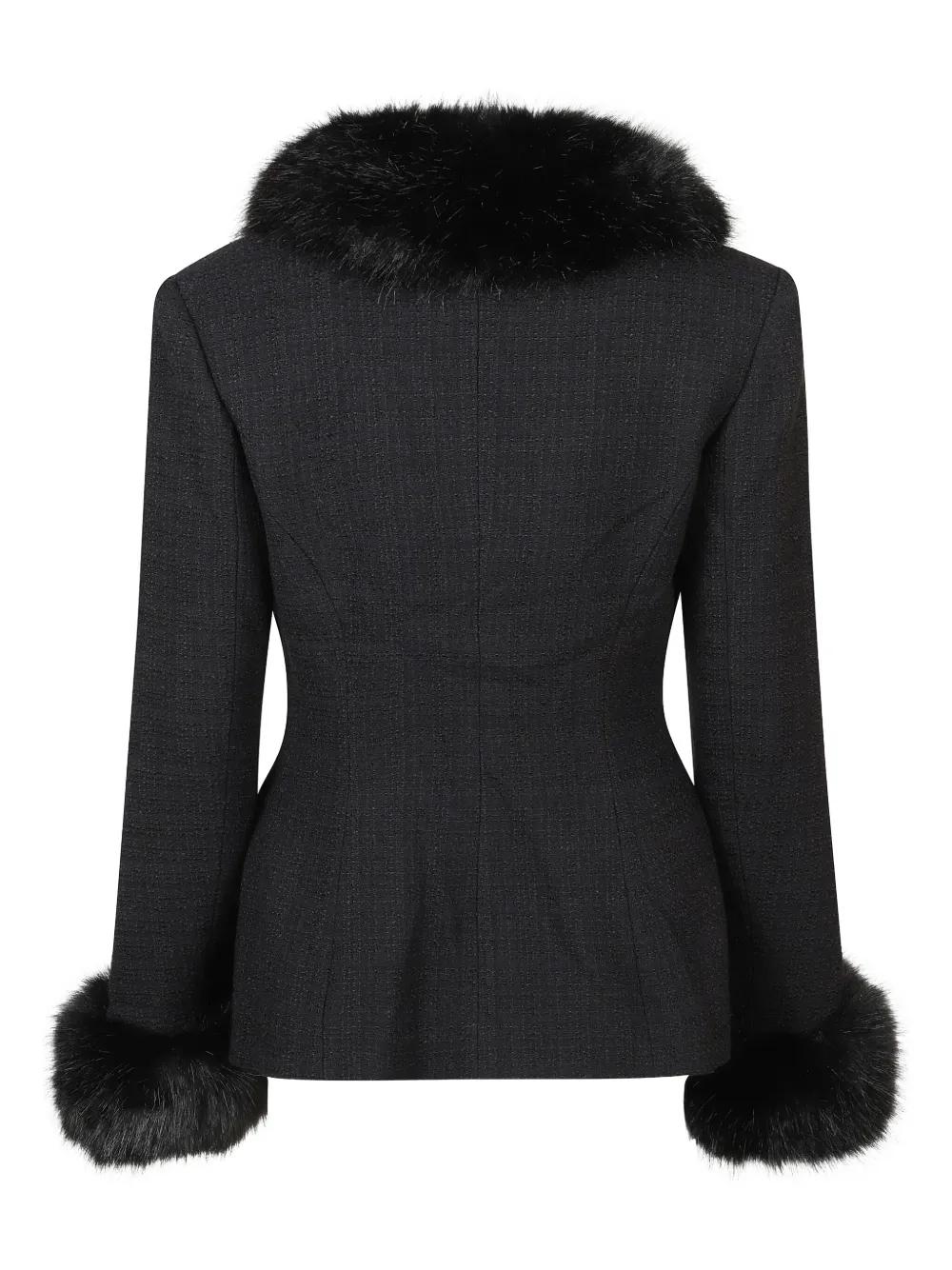 Self-Portrait fur-trimmed tweed jacket - Black