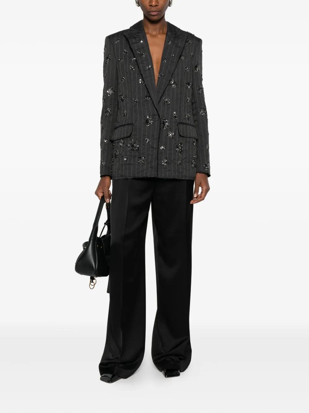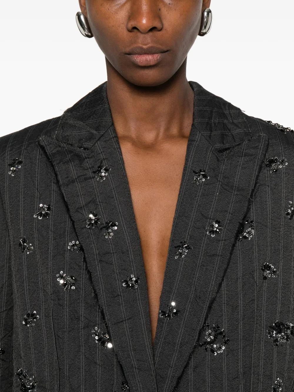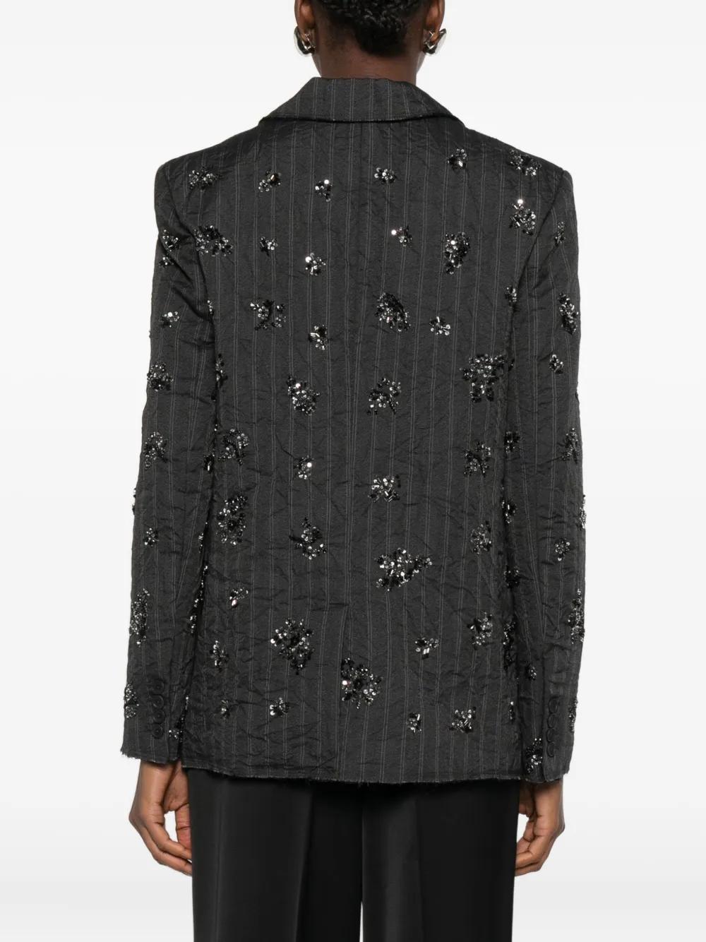 grey sequin embellishment striped pattern front button fastening peak lapels front flap pockets