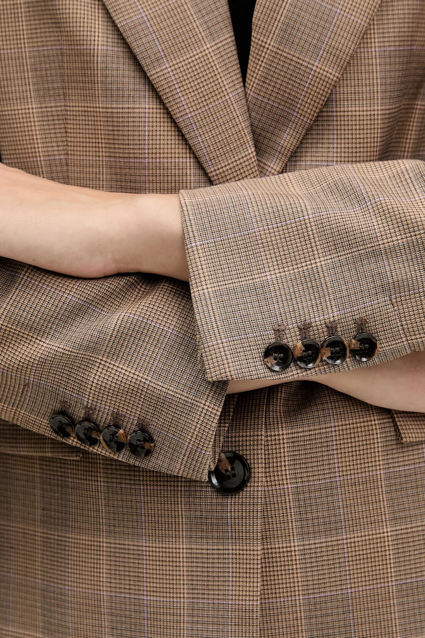 - Prosty, nie blokujący ruchów fason. - W ramiona wszyte poduszki. - Klasyczne klapy. - Z przodu dwie wsuwane kieszenie. - Dodatkowa warstwa materiału w postaci podszewki.