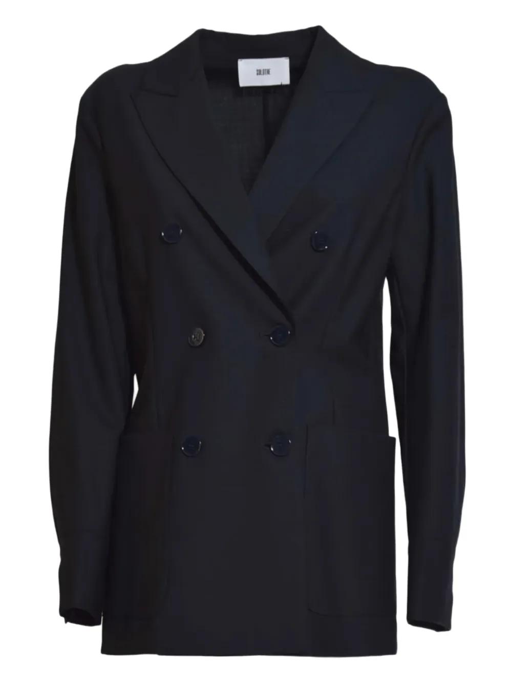 blue double-breasted button fastening notched lapels front pockets long sleeves