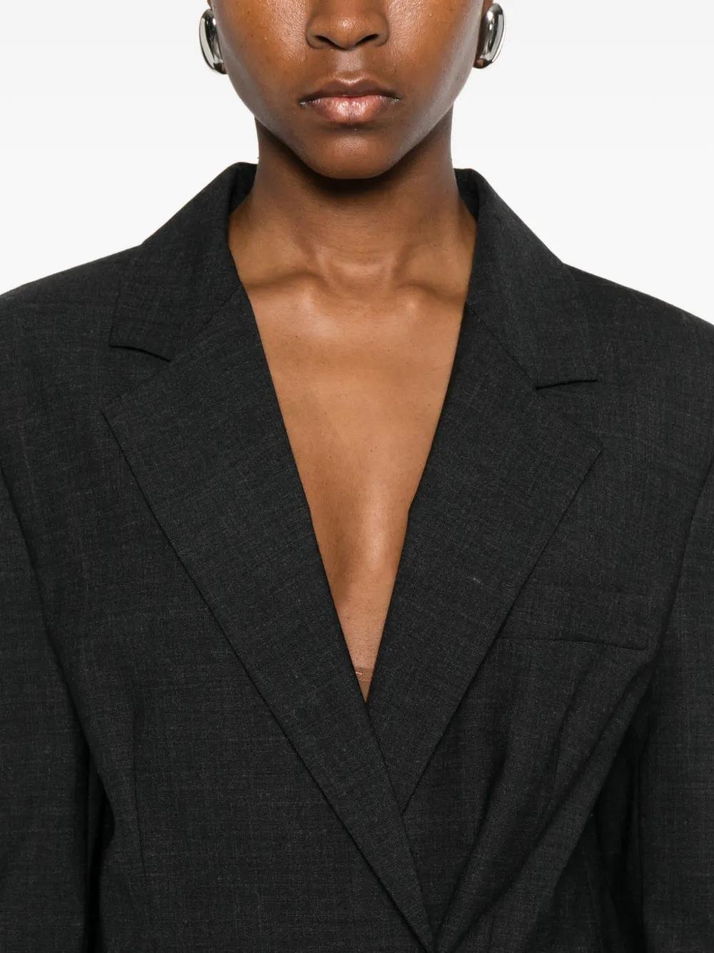black double-breasted notched lapels front flap pockets long sleeves front button fastening