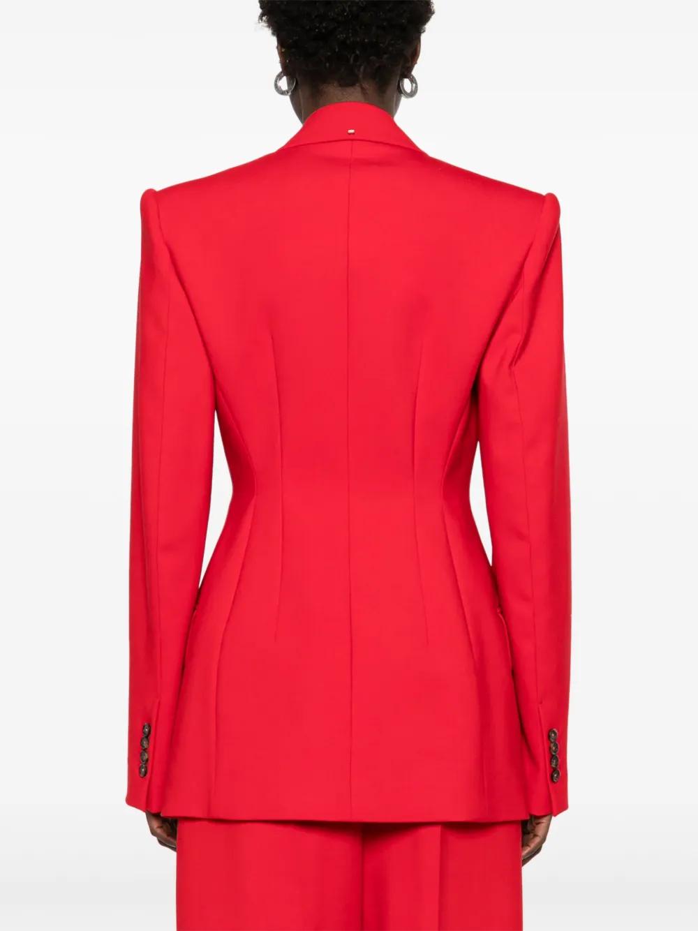 cardinal red double-breasted button fastening shoulder pads chest welt pocket two front flap pockets