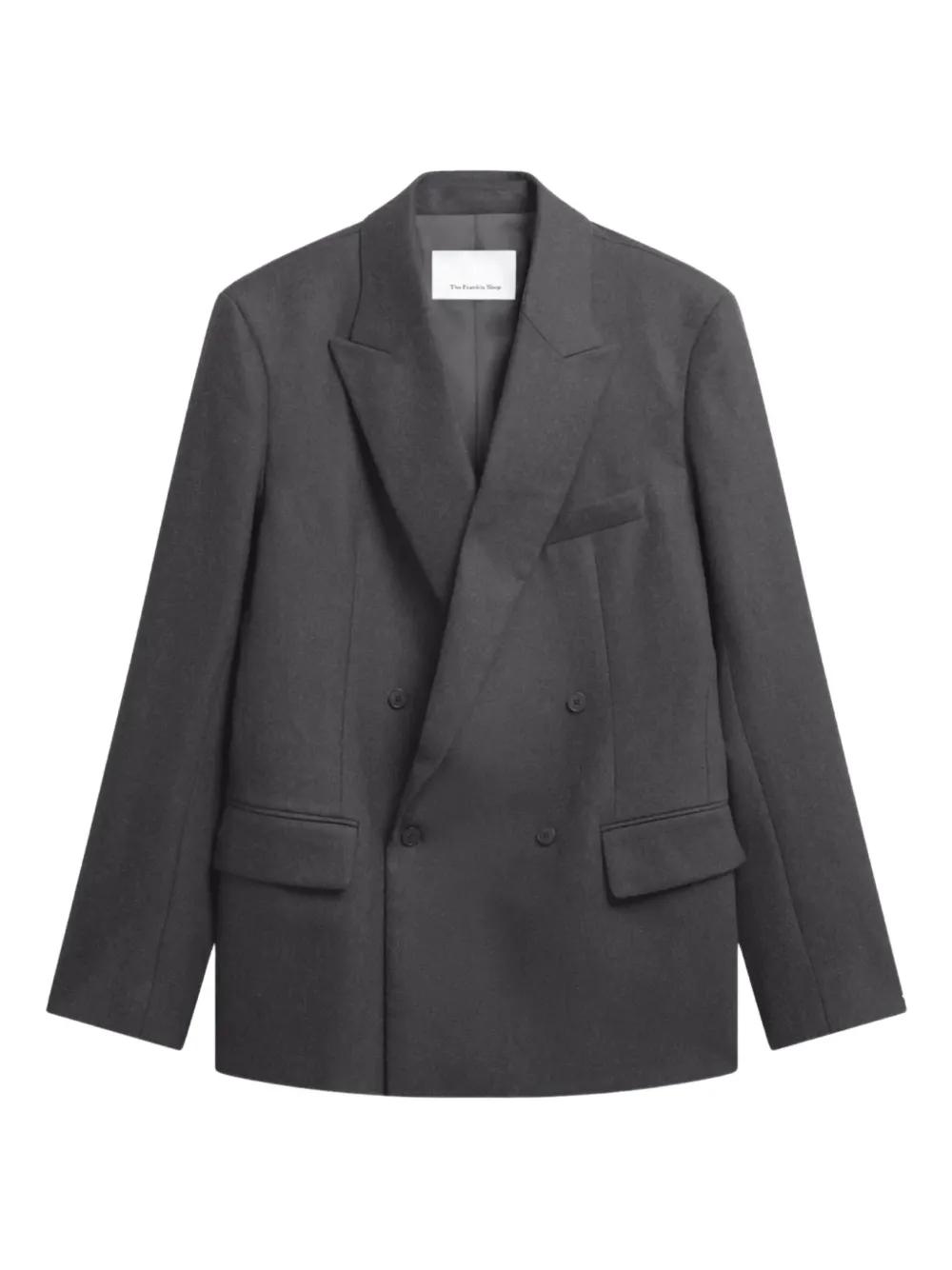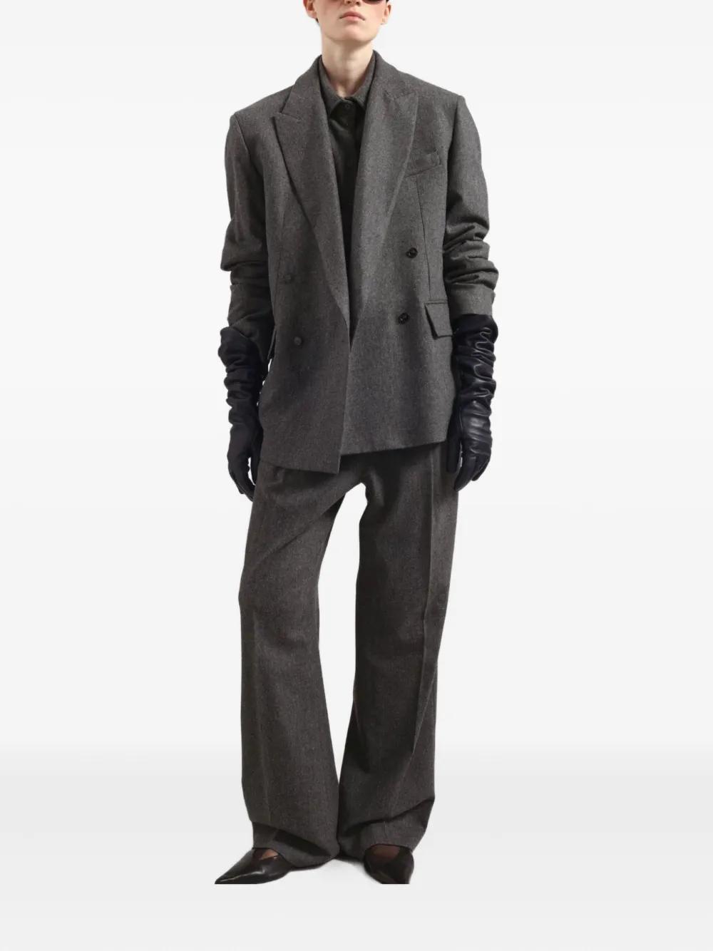 grey double-breasted flap pockets button fastening notched lapels long sleeves