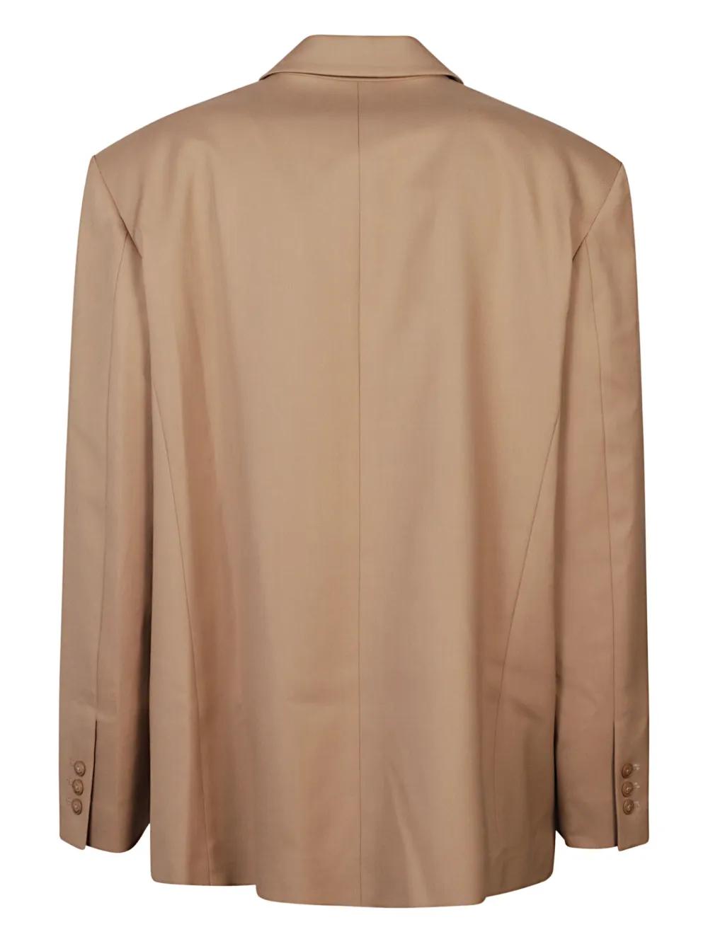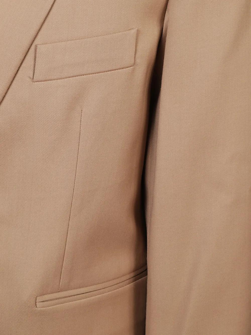 beige wrap front two-button fastening welt pockets long sleeves straight hem