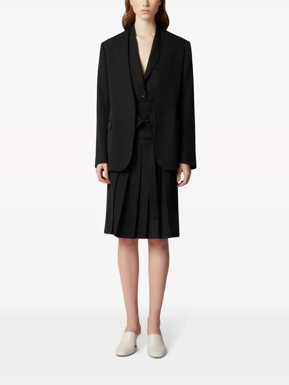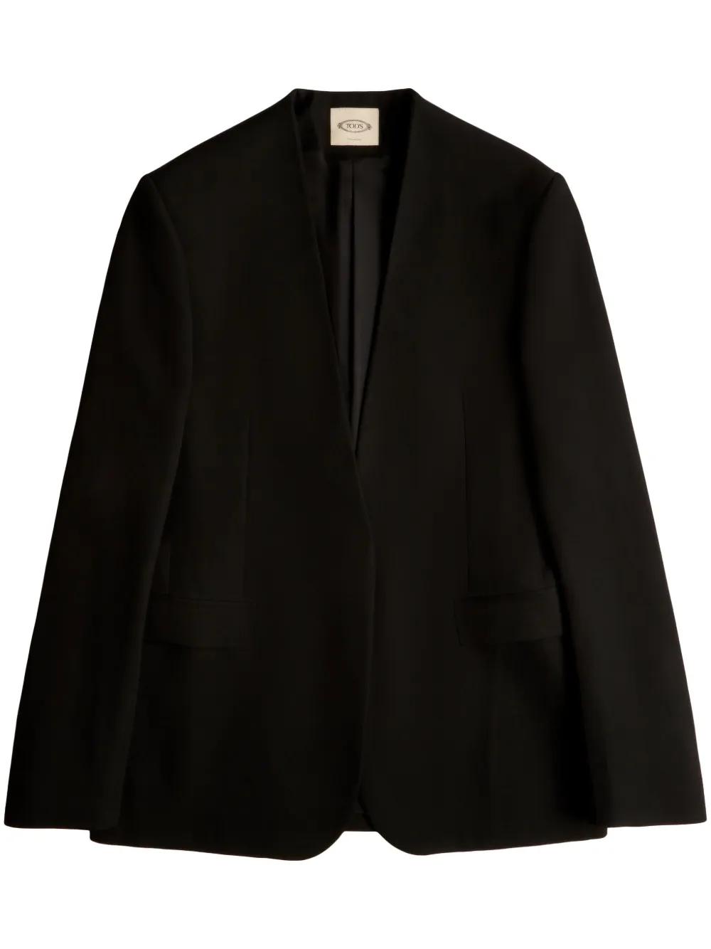 black virgin wool no lapels long sleeves front button fastening long sleeves two side flap pockets