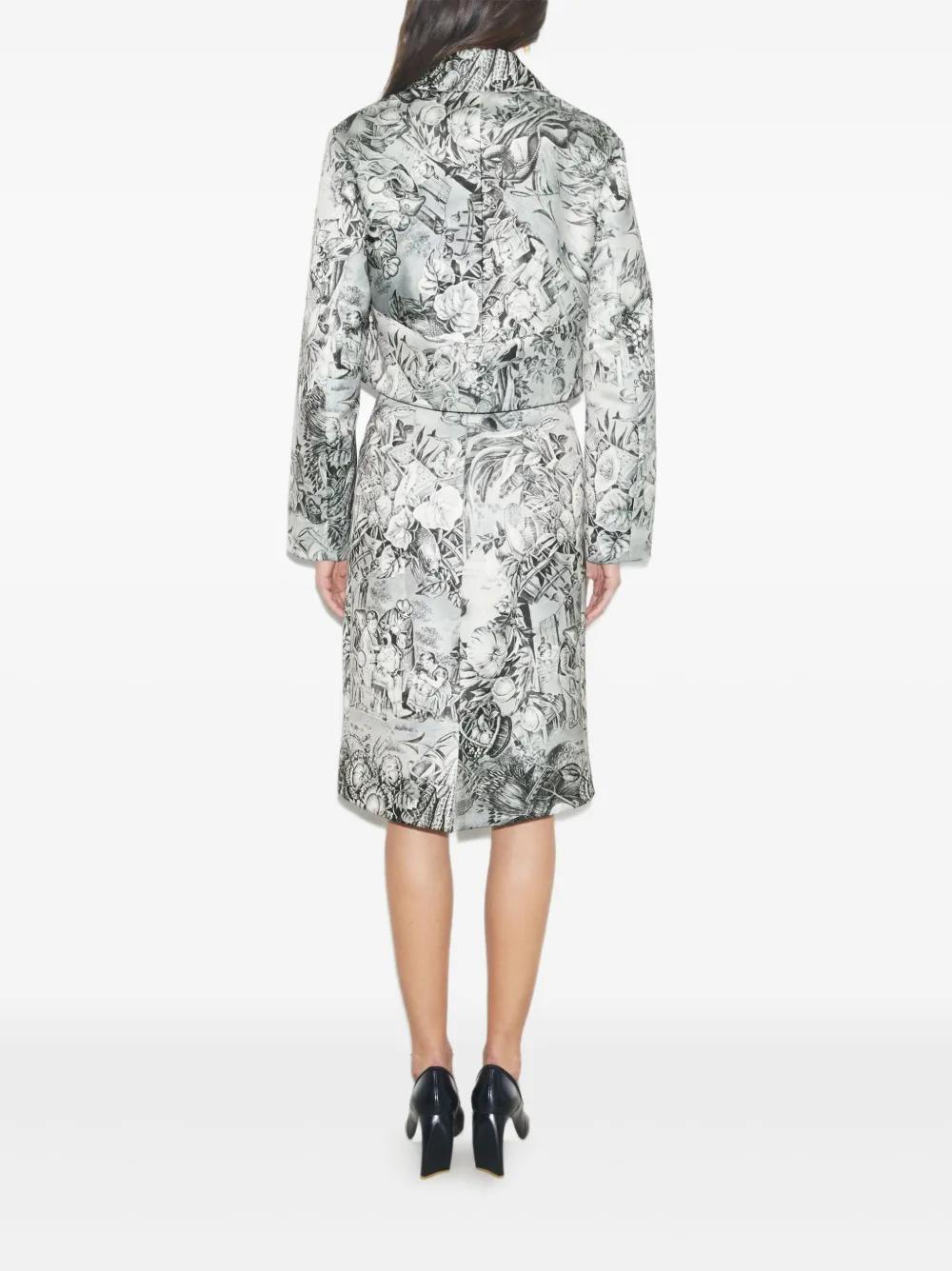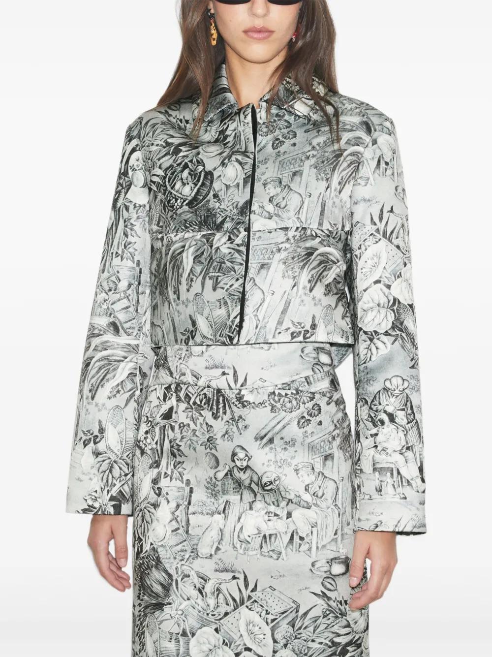 light grey all-over print collared neckline button front fastening cropped length