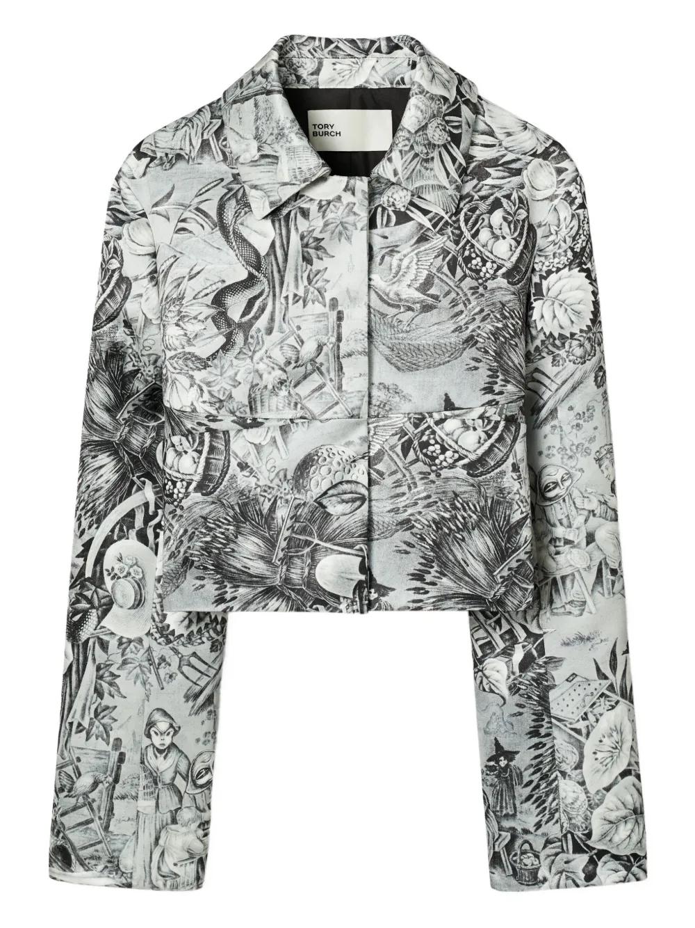 Tory Burch printed crop blazer - Grey