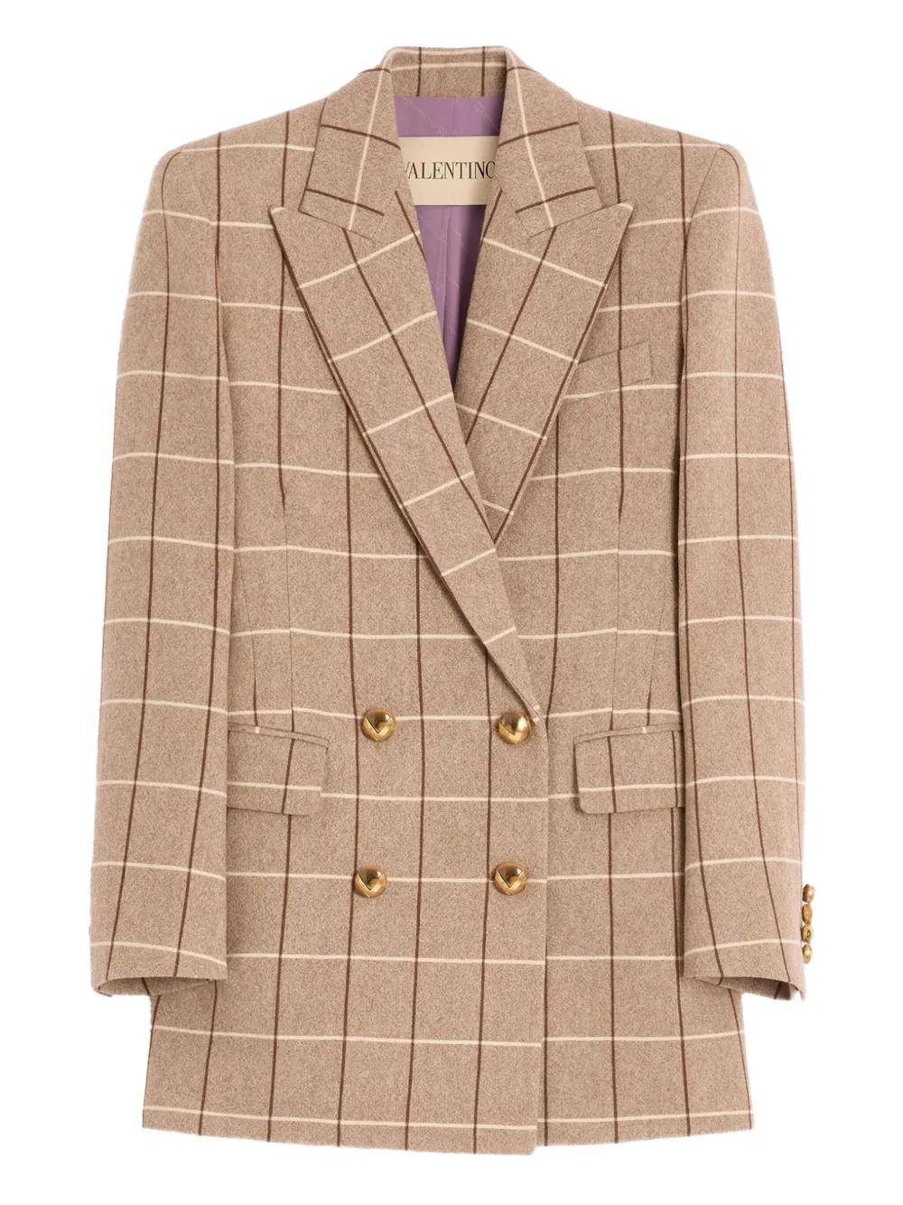 Valentino Garavani windowpane-check double-breasted blazer - Neutrals
