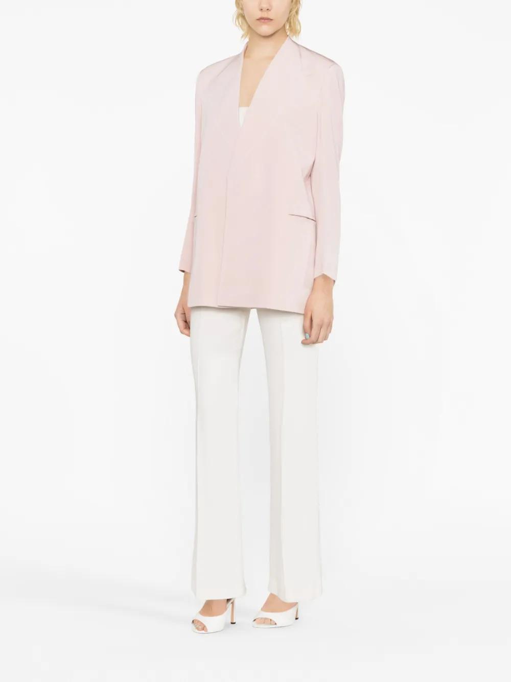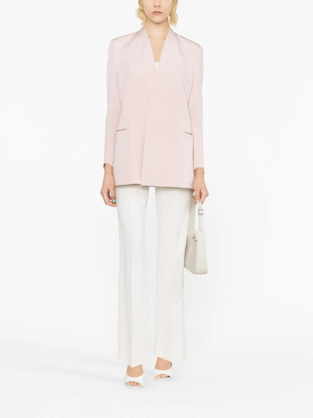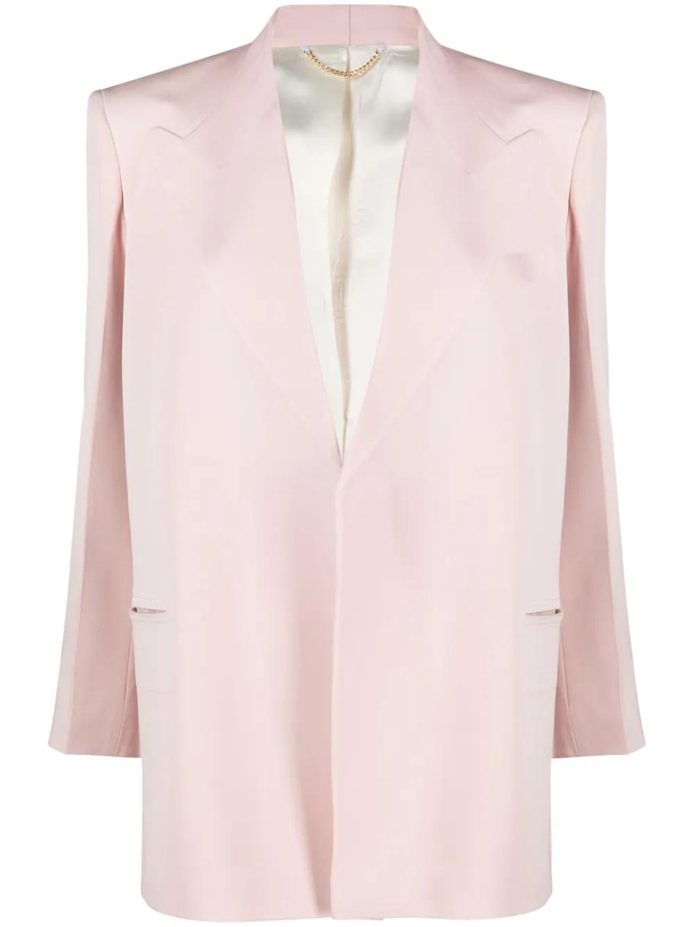 blush pink cotton blend peak lapels long sleeves front button fastening chest welt pocket two side welt pockets straight hem