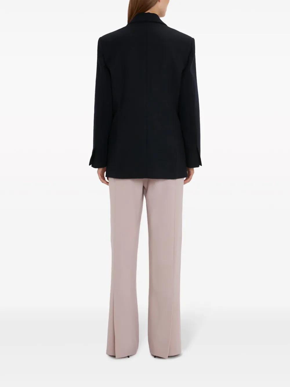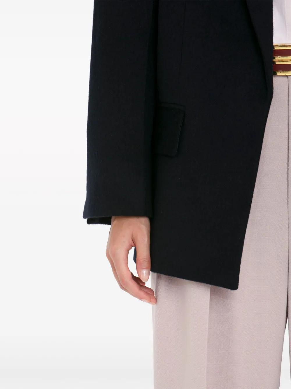 midnight blue wool-cashmere blend felted finish peak lapels front button fastening shoulder pads long sleeves chest welt pocket two front flap pockets internal jetted pocket Italian rear vents straight hem full lining