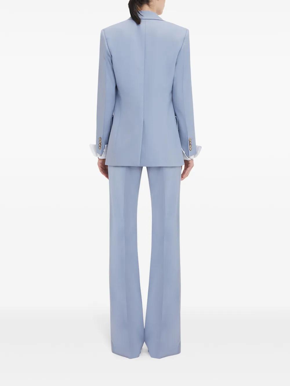 pastel blue front button fastening chest welt pocket two side flap pockets American rear vent