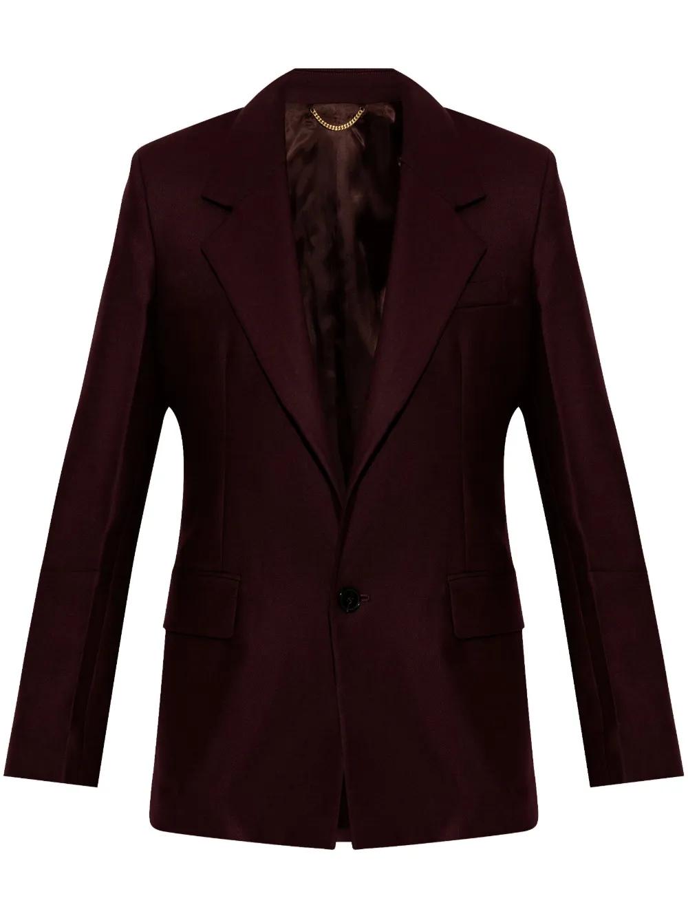 mahogany wool blend button fastening two side flap pockets notched lapels full lining