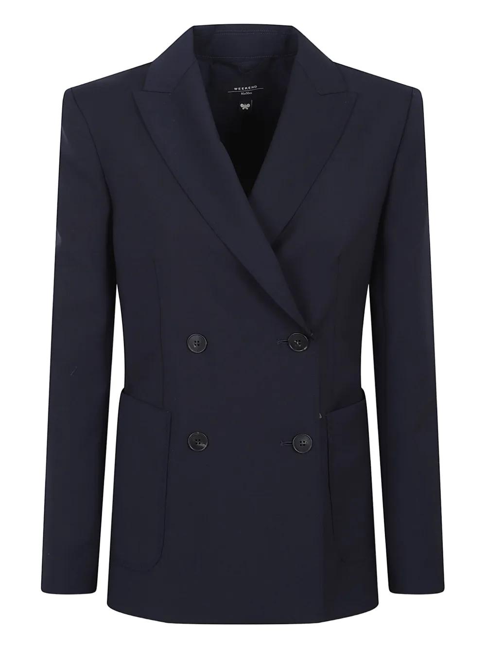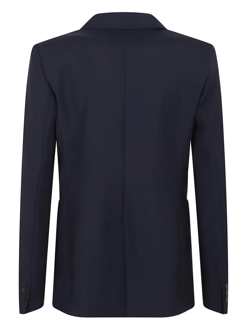 navy blue wool double-breasted button fastening patch pockets peak lapels