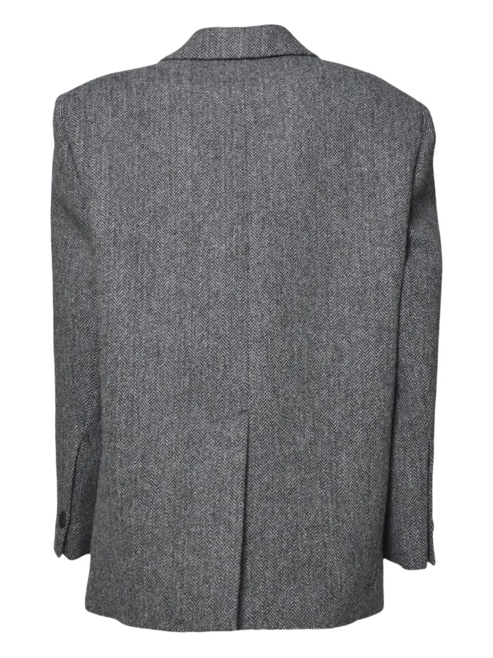 grey herringbone pattern single-breasted closure notched lapel long sleeves flap pockets