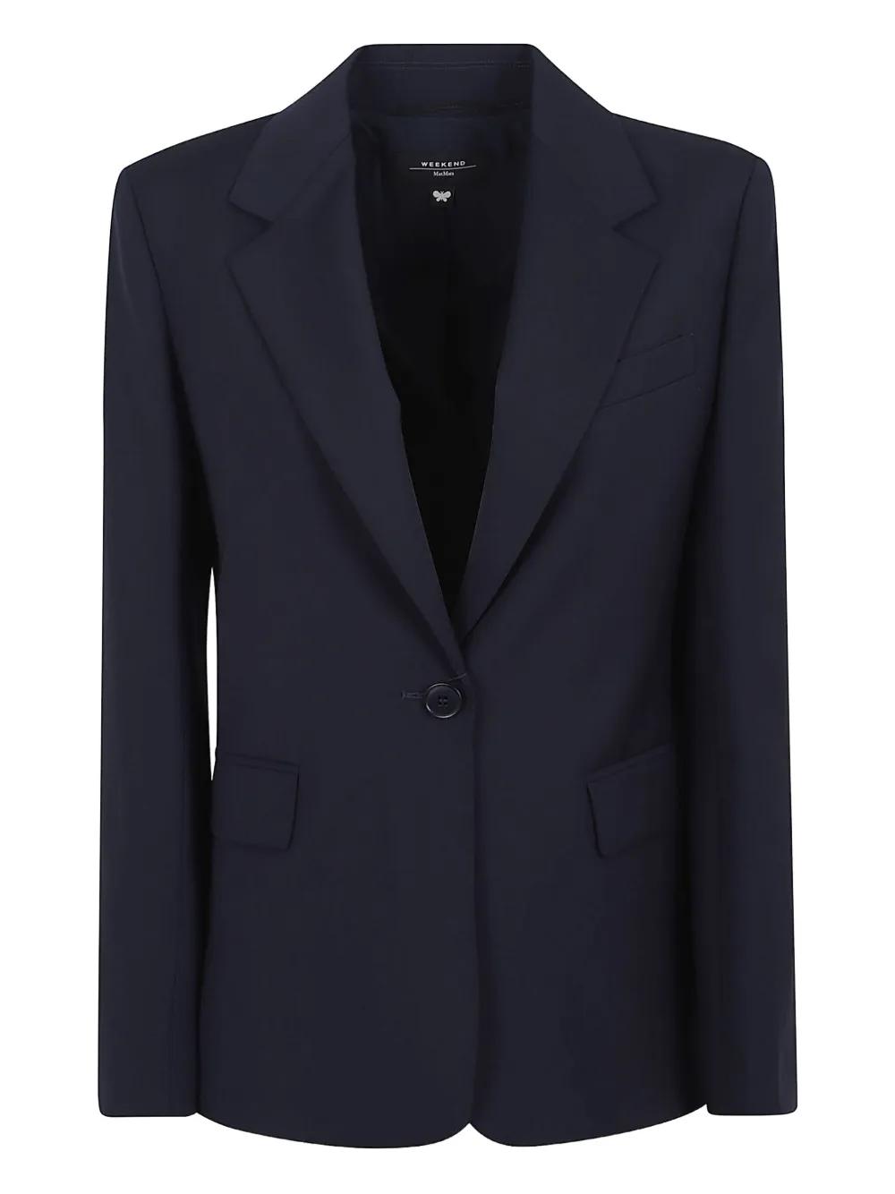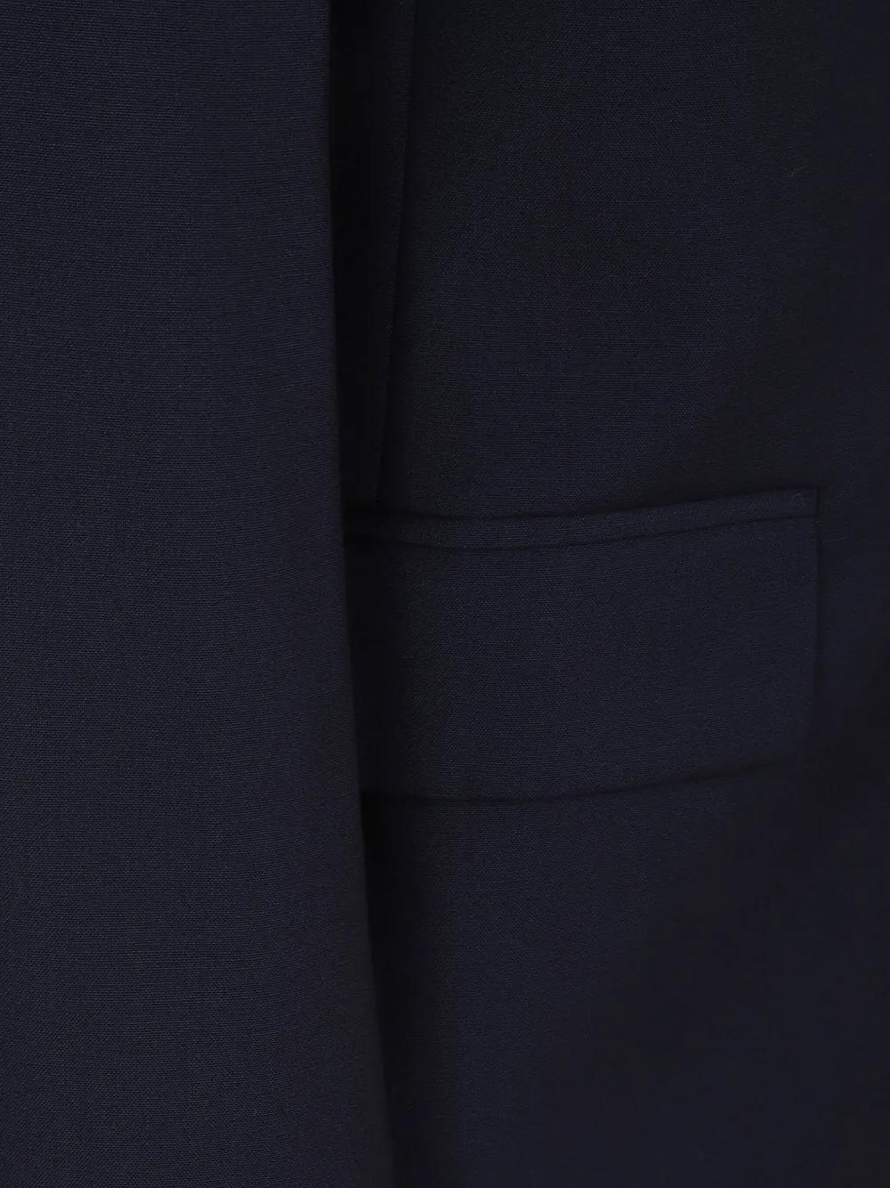 blue wool front button fastening notched lapel flap pockets long sleeves