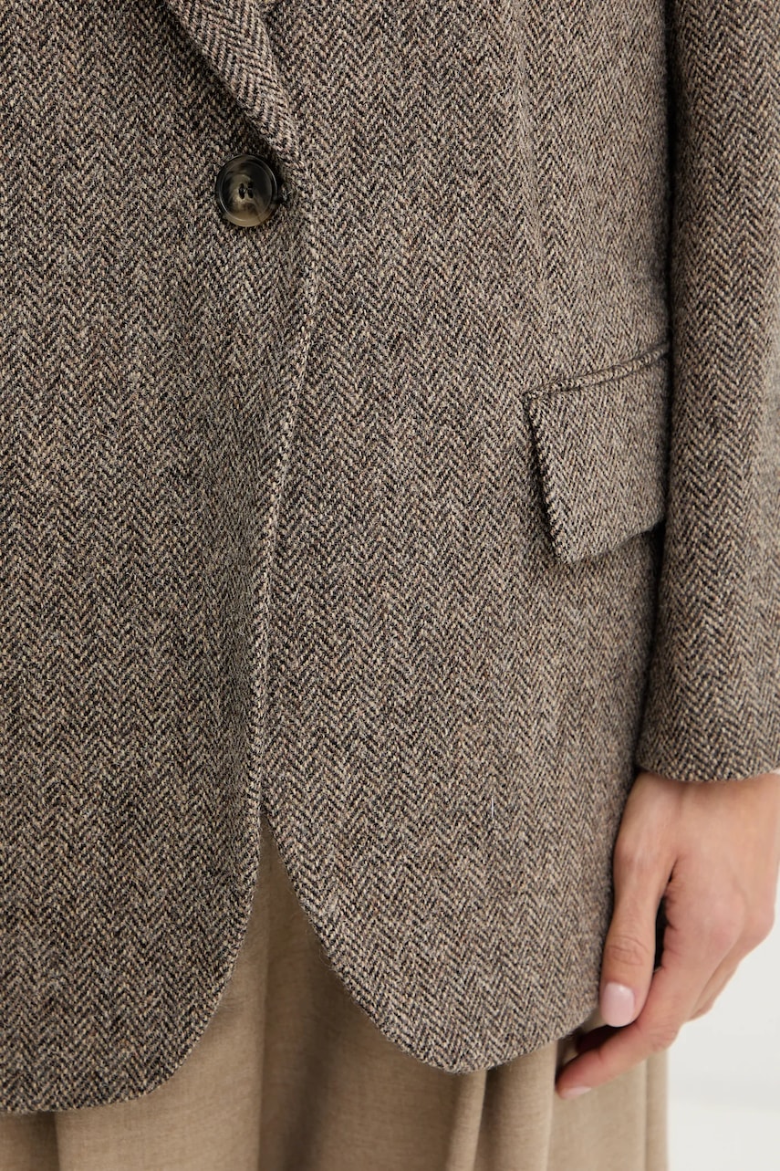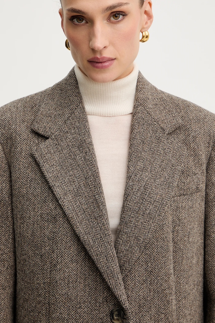 Weekend Max Mara marynarka wełniana TRONTO kolor brązowy jednorzędowa melanżowa 2525046042600