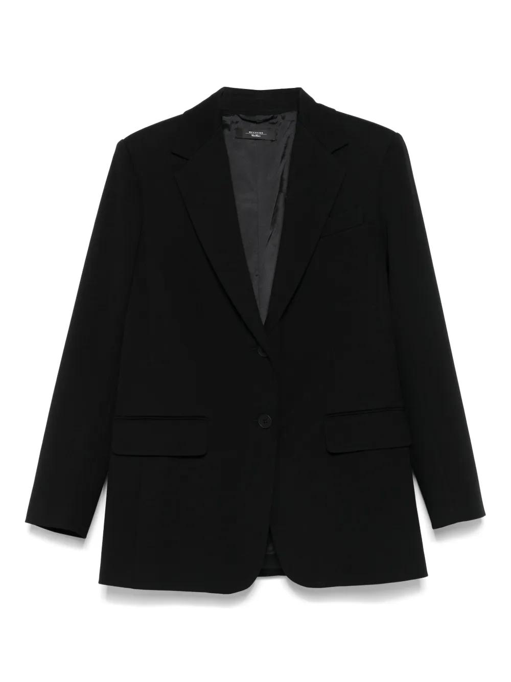 black single-breasted closure flap pockets long sleeves notched lapel straight hem