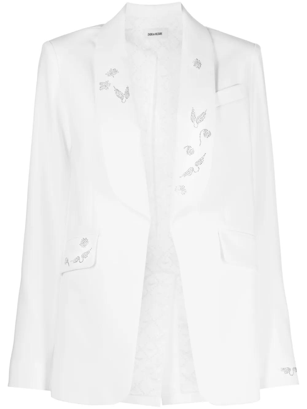 Zadig&Voltaire rhinestone-embellished shawl-lapel blazer - White