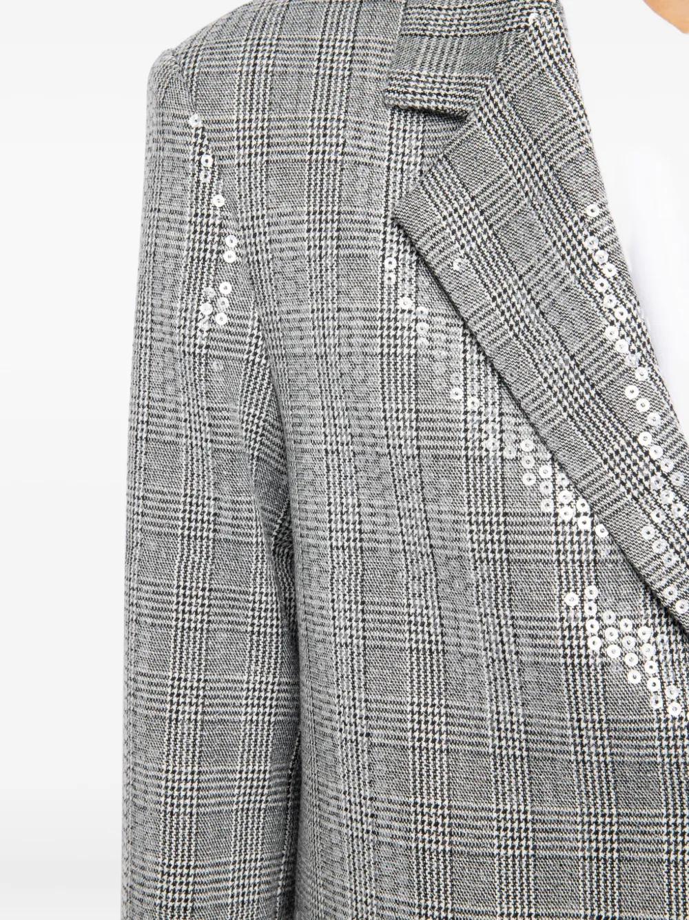 black sequined embellishment check pattern two-button fastening notched lapels long sleeves