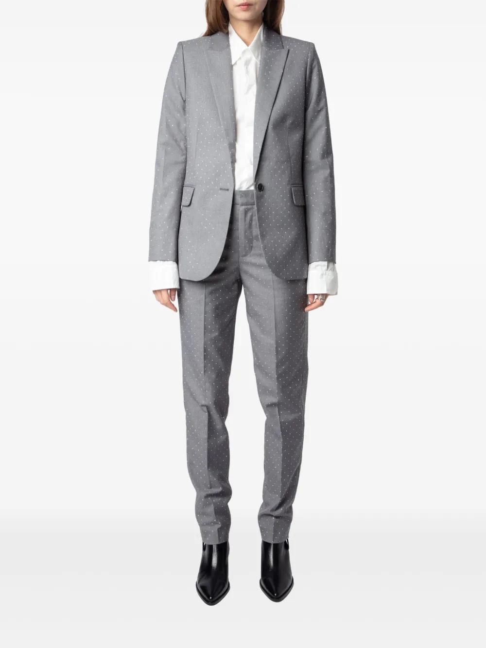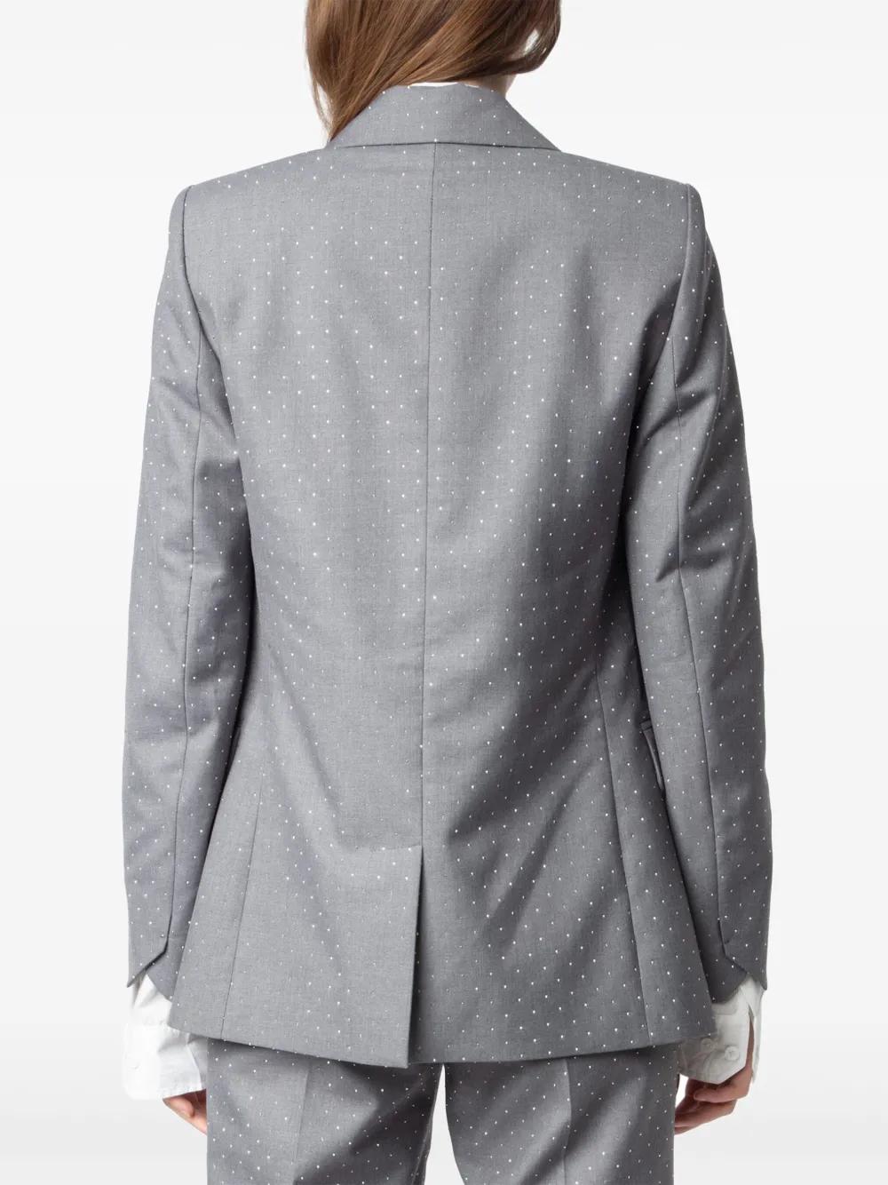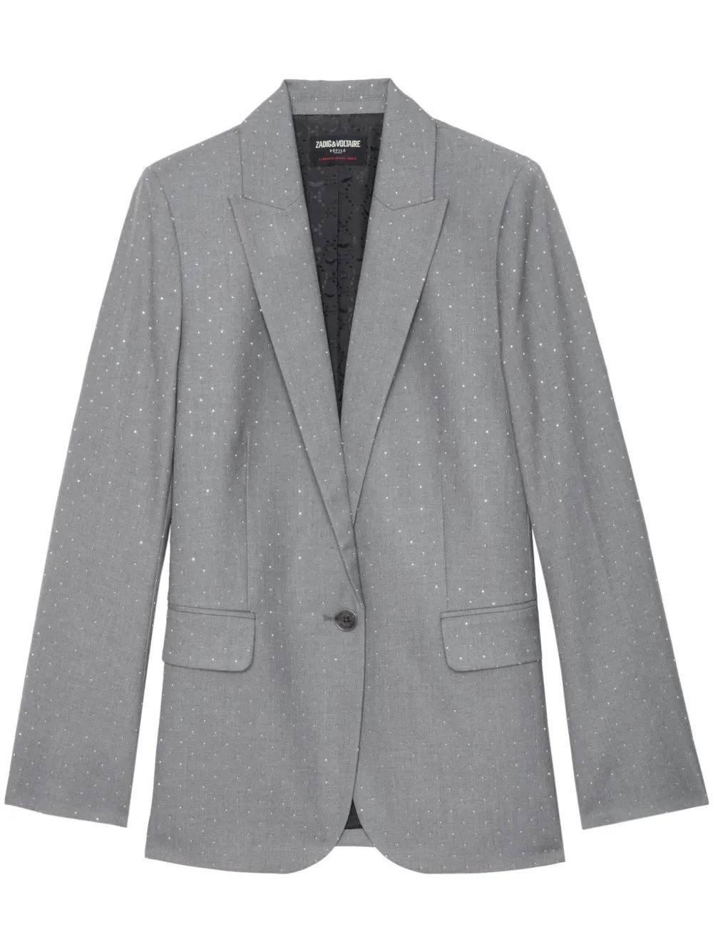ash grey front button fastening two side flap pockets peak lapels crystal embellishment
