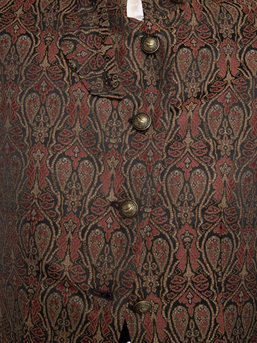 brown and black paisley print mandarin collar button fastening long sleeves jetted pockets