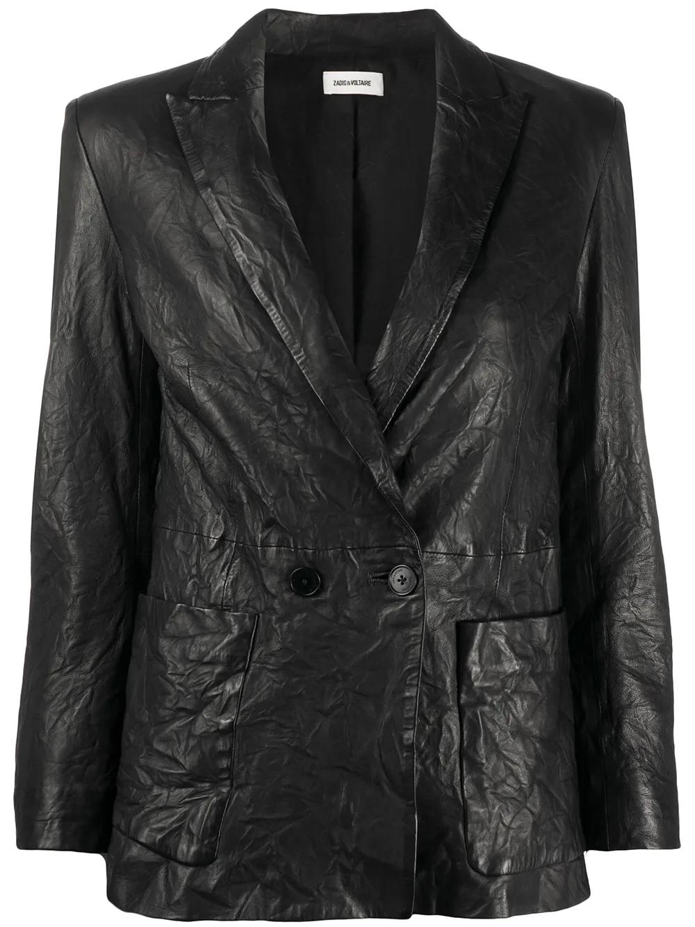 Black lambskin Visko double breasted blazer from Zadig & Voltaire featuring peaked lapels, a double breasted front fastening, long sleeves, front pockets and a straight hem.