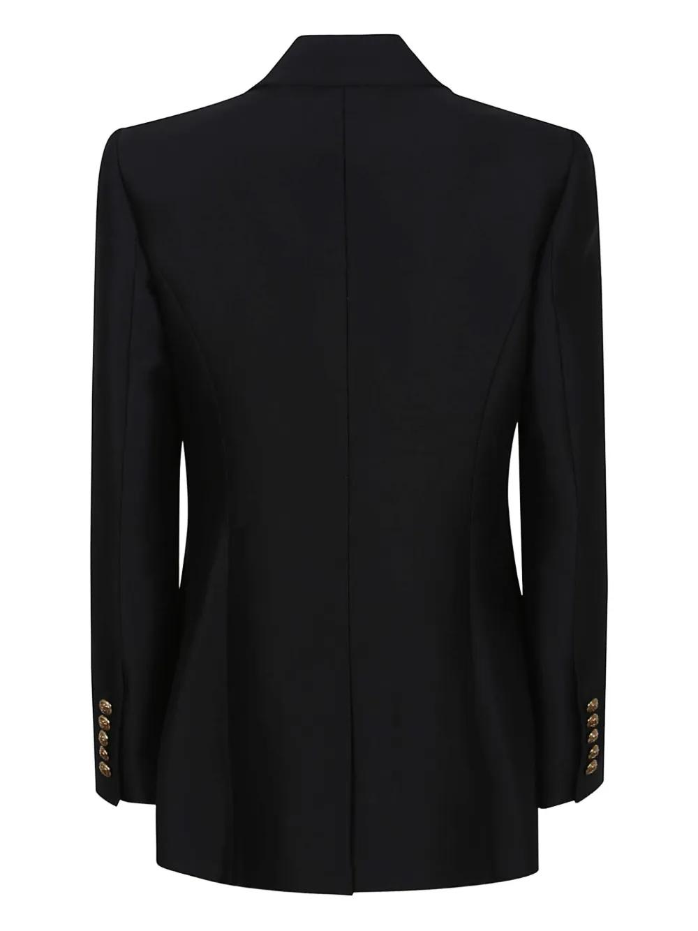 black single button fastening notched lapel gold-tone buttons welt pockets
