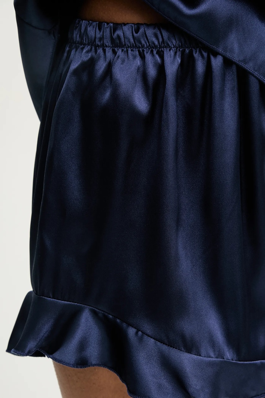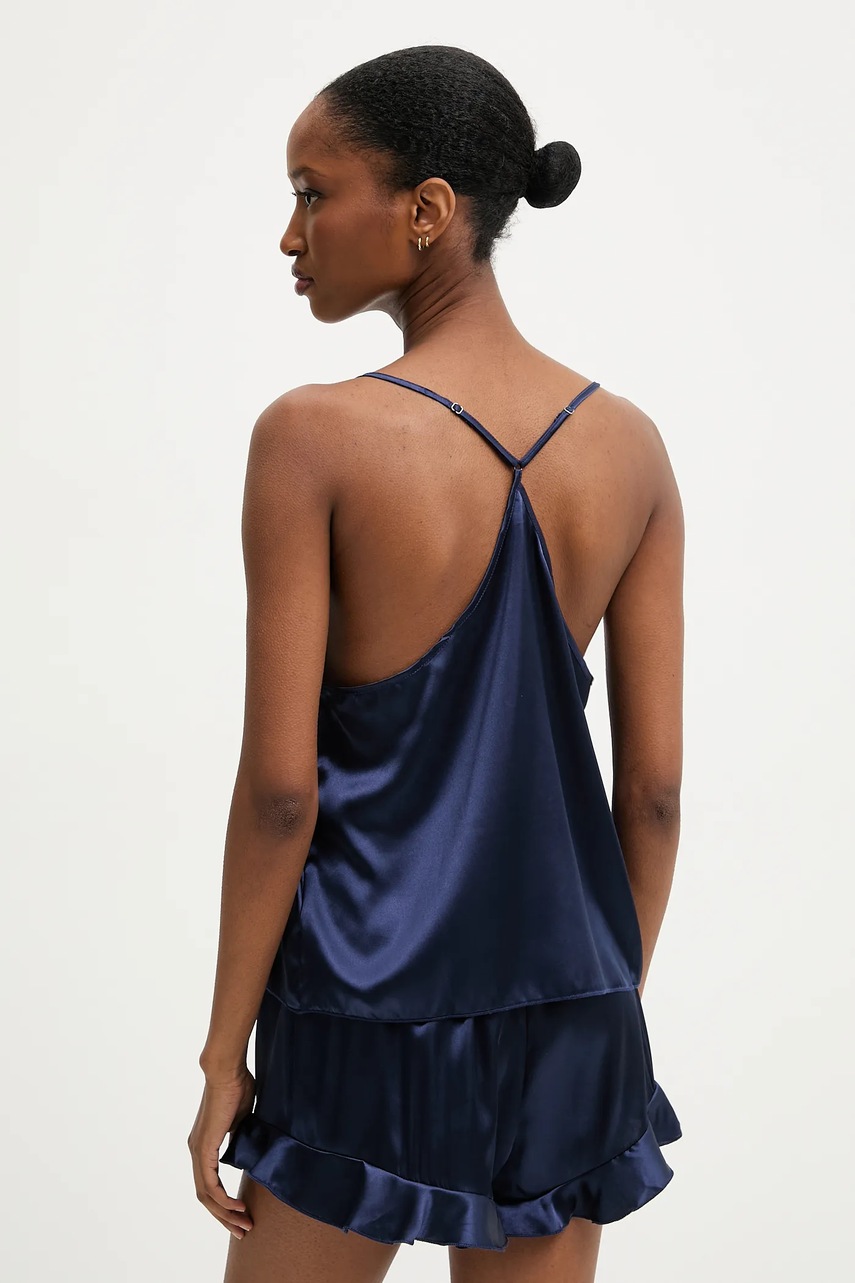 - Prosty, nie blokujący ruchów fason. - Klasyczny, okrągły dekolt. - Regulowane ramiączka zapewniają optymalne podtrzymanie biustu i możliwość dowolnego dopasowania do sylwetki tak, aby nie podrażniały skóry ramion. - Szorty luźne w okolicy bioder. - Prosta nogawka na całej długości. - Wysoki stan zapewnia komfort podczas aktywności i pozwala optycznie wyszczuplić sylwetkę. - Elastyczna listwa w pasie zapobiega zsuwaniu się podczas ruchu. - Efektowne falbany. - Cienka, elastyczna tkanina. - Długość: 58 cm. - Szerokość pod pachami: 46 cm. - Szerokość w pasie: 35 cm. - Wysokość stanu: 28 cm. - Długość nogawki: 36 cm. - Wymiary podane dla rozmiaru: S.
