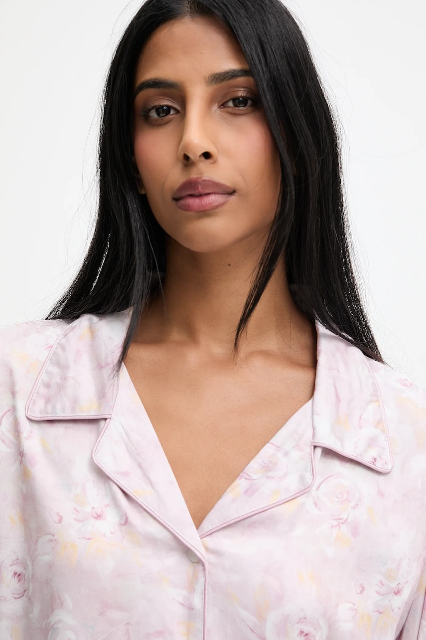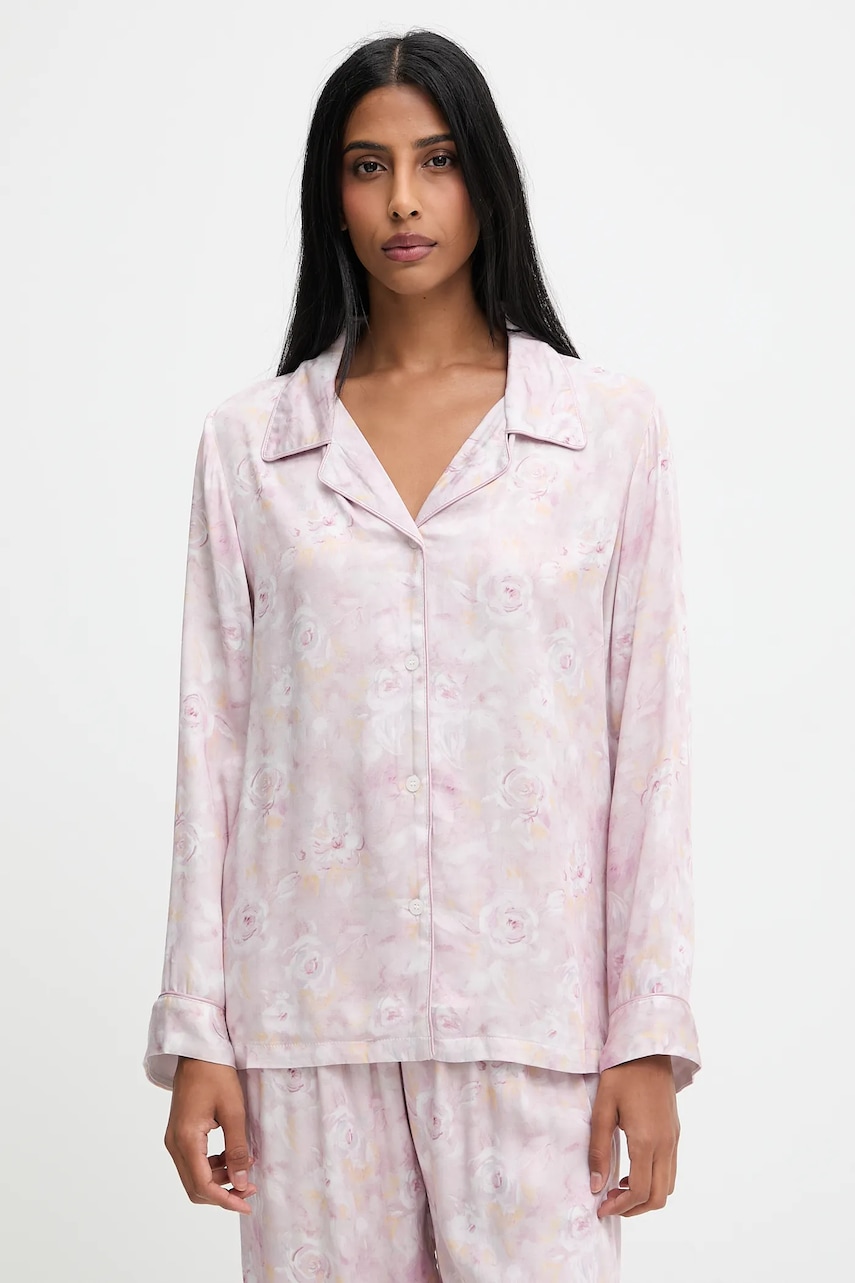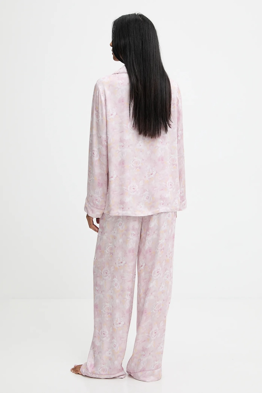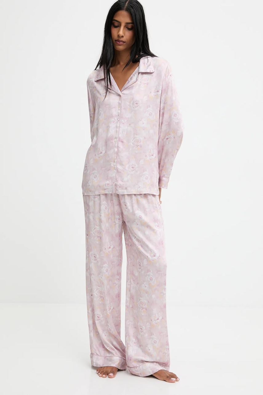 - W skład piżamy wchodzi koszula i spodnie. - Długi rękaw. - Model z kołnierzykiem. - Zapięcie na guziki. - Luźny fason. - Elastyczna listwa w pasie.