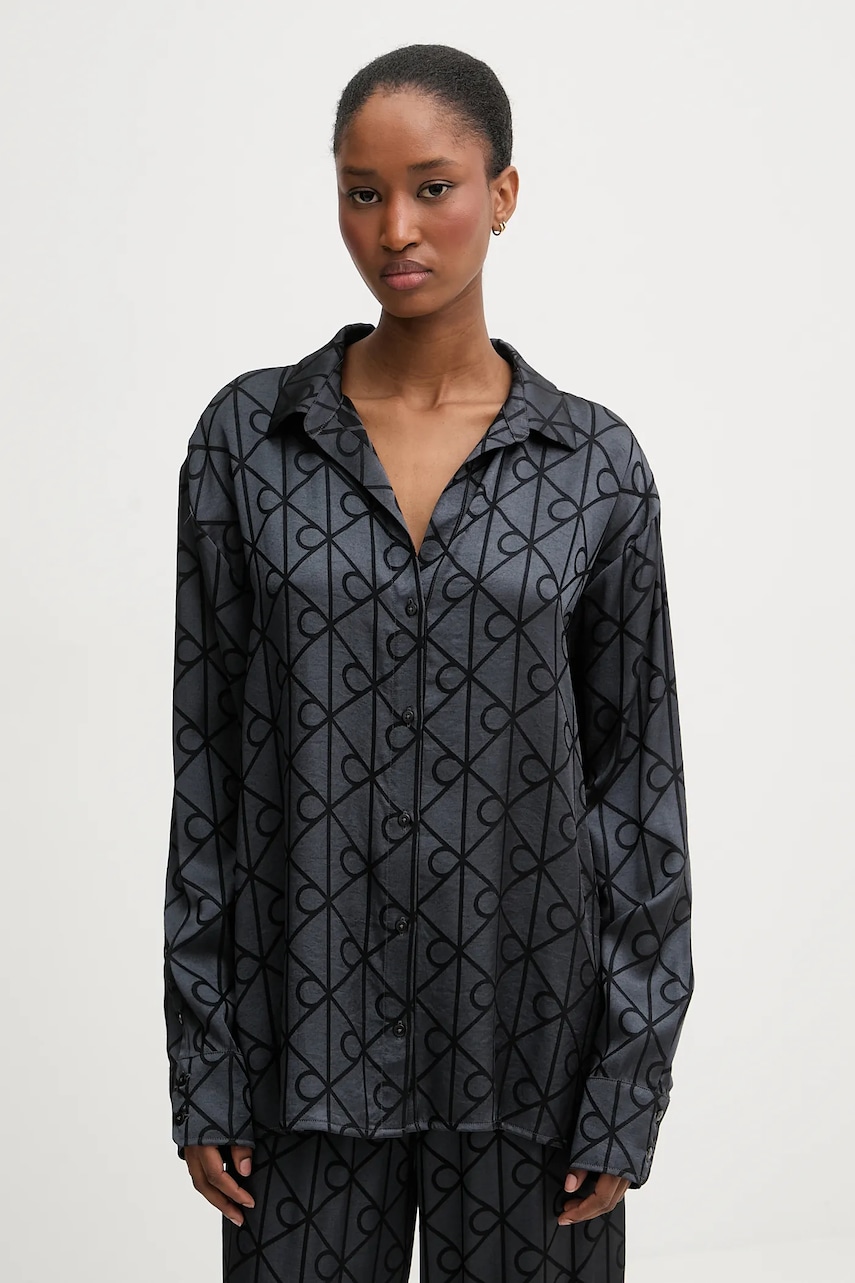 Calvin Klein Underwear koszula piżamowa damska kolor szary satynowa LV00QS7535