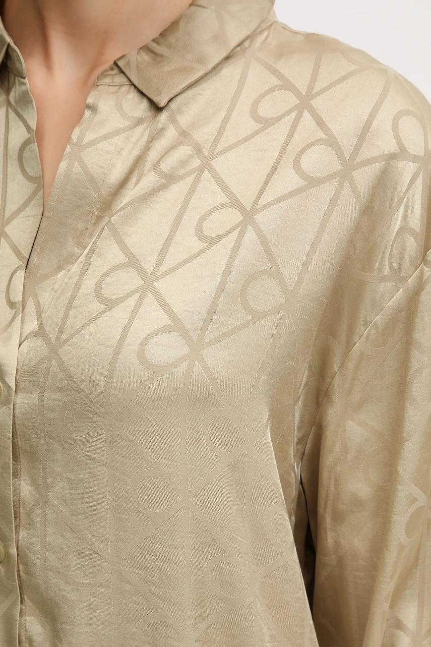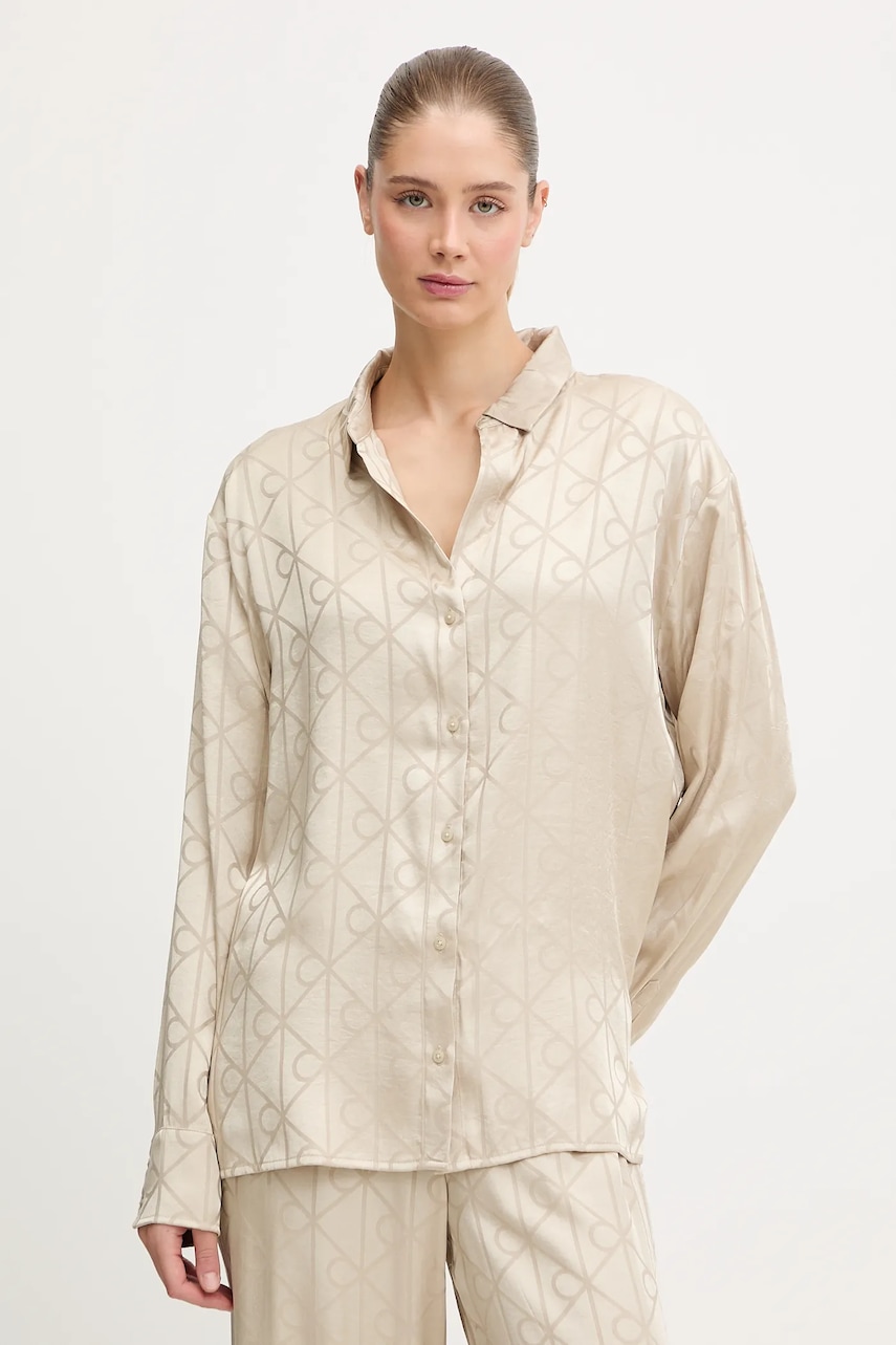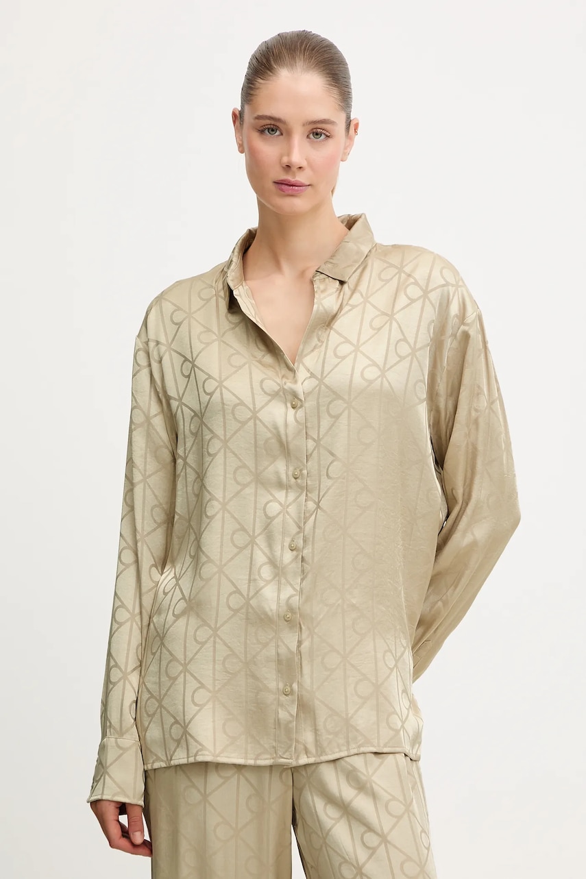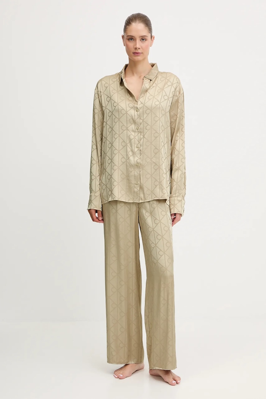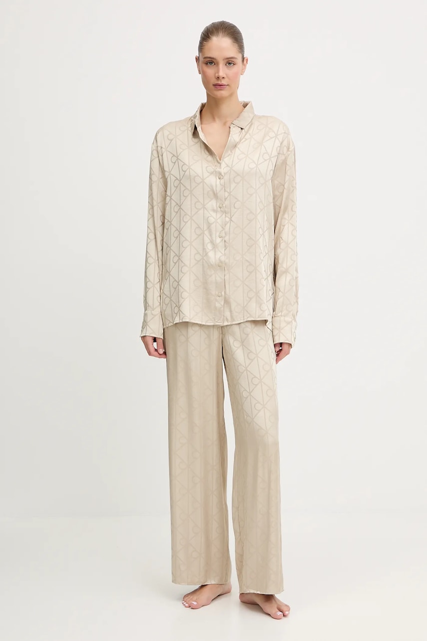 Calvin Klein Underwear piżama damska kolor beżowy satynowa LV00QS7574