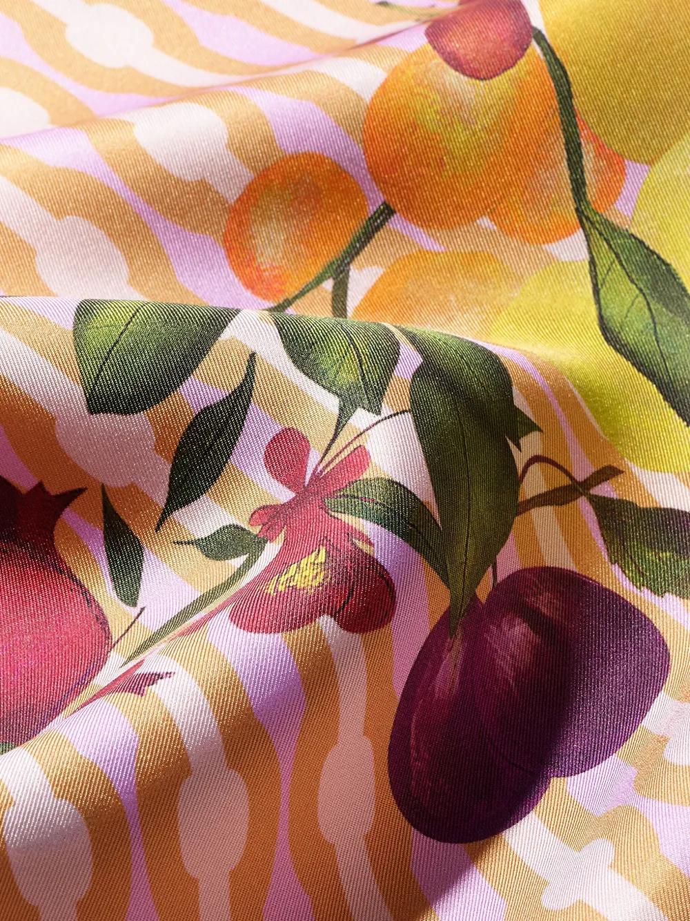 pink/multicolour silk geometric pattern all-over fruit print elasticated waistband
