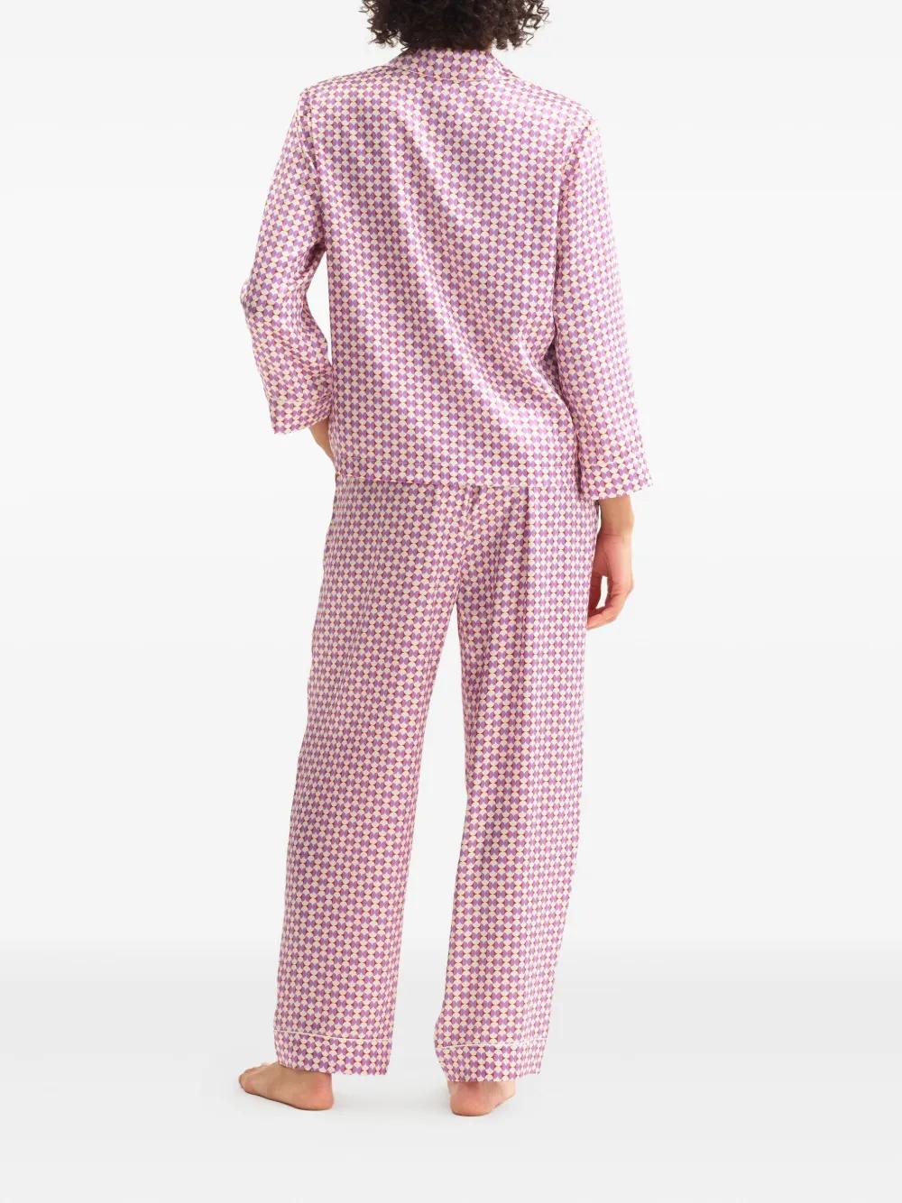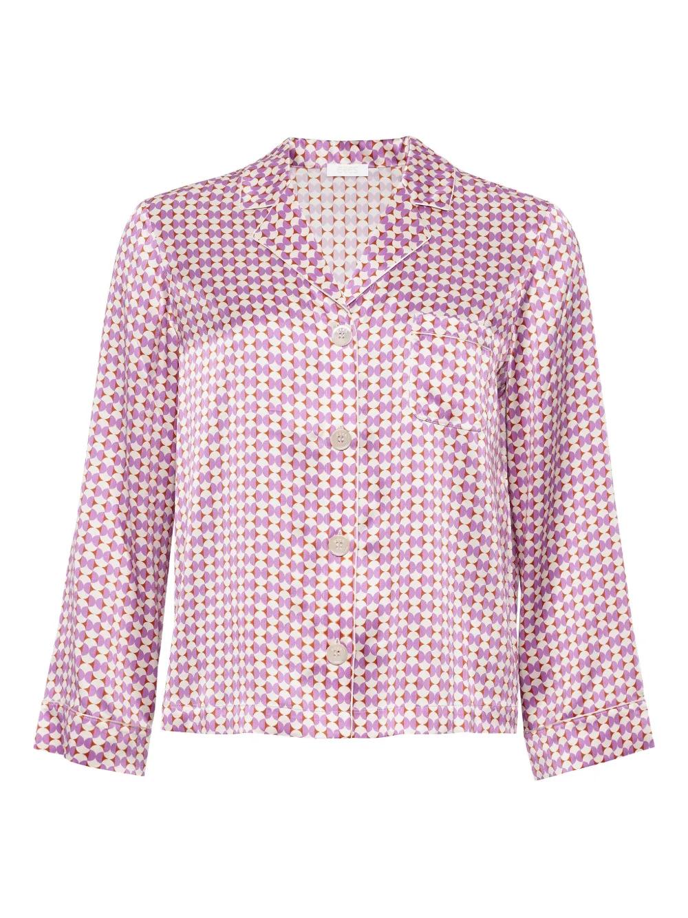 lilac purple/white/red silk geometric print button fastening long sleeves straight hem