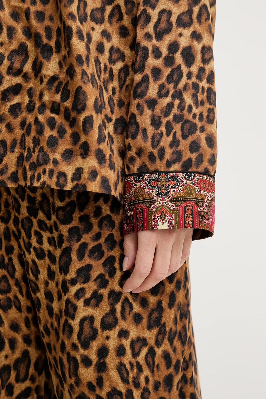 - Luźny krój zapewniający pełną swobodę ruchów. - Miękki kołnierzyk typu bowling. - Krój rękawa z obniżoną linią ramion nie ogranicza mobilności. - Wygodne zapięcie na guziki ułatwia zakładanie i zdejmowanie. - Spodnie luźne w okolicy bioder i ud. - Wysoki stan zapewnia komfort podczas aktywności i pozwala optycznie wyszczuplić sylwetkę. - W pasie elastyczna listwa i dodatkowa regulacja szerokości za pomocą troczków, która zapobiega zsuwaniu się podczas ruchu. - Prosta nogawka na całej długości. - Cienka, nieelastyczna tkanina. - Długość rękawa(mierzona od kołnierzyka): 69 cm. - Długość: 66 cm. - Szerokość pod pachami: 50 cm. - Szerokość w pasie: 40 cm. - Wysokość stanu: 29 cm. - Długość nogawki: 102 cm. - Wymiary podane dla rozmiaru: S.
