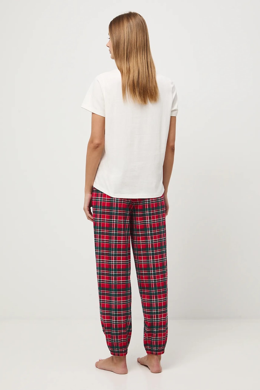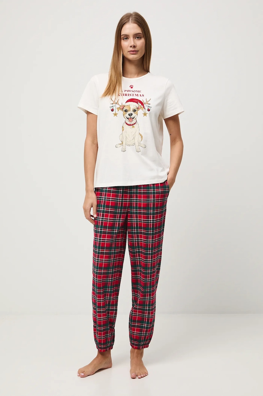 - Prosty fason. - Krótki rękaw. - Okrągły dekolt. - Regularna talia. - Elastyczna listwa w pasie. - Nogawki wykończone ściągaczem. - Wzór w kratę. - Nadruk z motywem zwierzęcym - pies. - Nadruk z napisem: a pawsome Christmas. - Motyw świąteczny. - Długość: 64 cm. - Szerokość w biuście: 52 cm. - Szerokość w pasie (przed rozciągnięciem): 38 cm. - Szerokość w pasie (po rozciągnięciu): 46 cm. - Szerokość w biodrach: 52 cm. - Wysokość stanu: 28 cm. - Długość wewnętrzna nogawki: 70 cm. - Wymiary podane dla rozmiaru: S. Chcesz zapakować ten produkt na prezent? W koszyku zakupów zaznacz opcję „Zapakuj na prezent”, a my zrobimy to dla Ciebie.