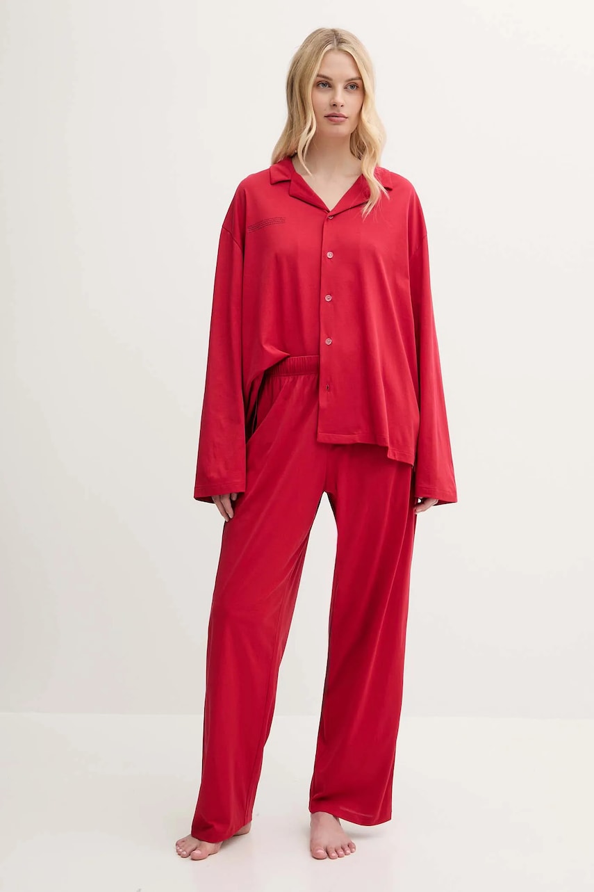 Pangaia piżama bawełniana damska kolor czerwony bawełniana 10002462