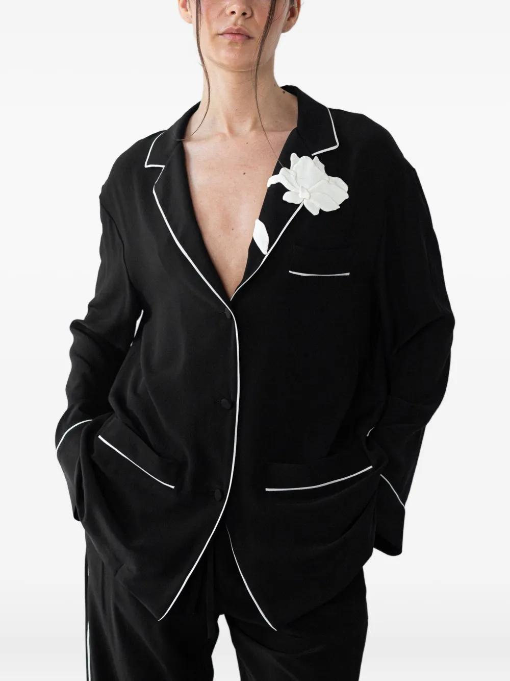 Valentino Garavani flower-detail piped-trim pajama top - Black