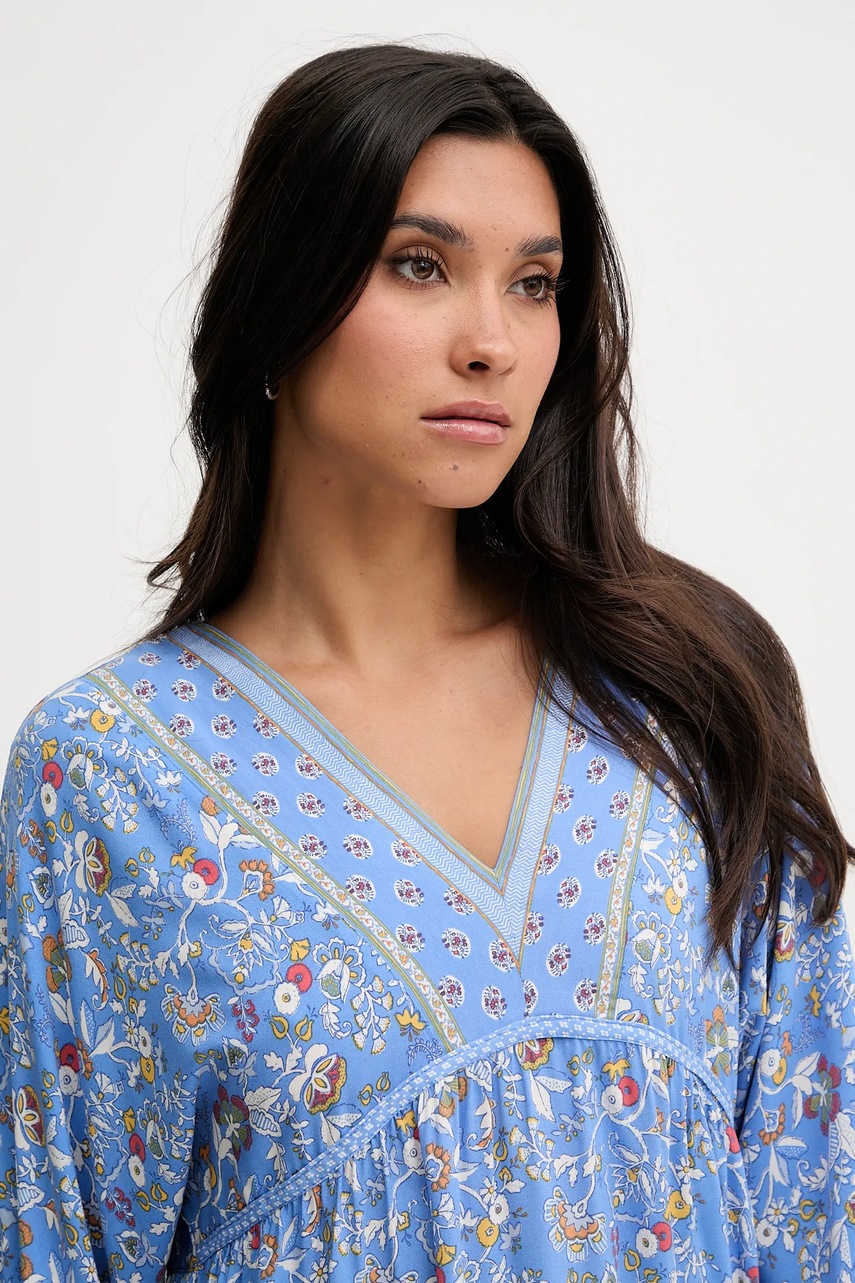 - Luźny krój zapewniający pełną swobodę ruchów. - Spiczasty dekolt. - Rękawy wykończone ściągaczem.