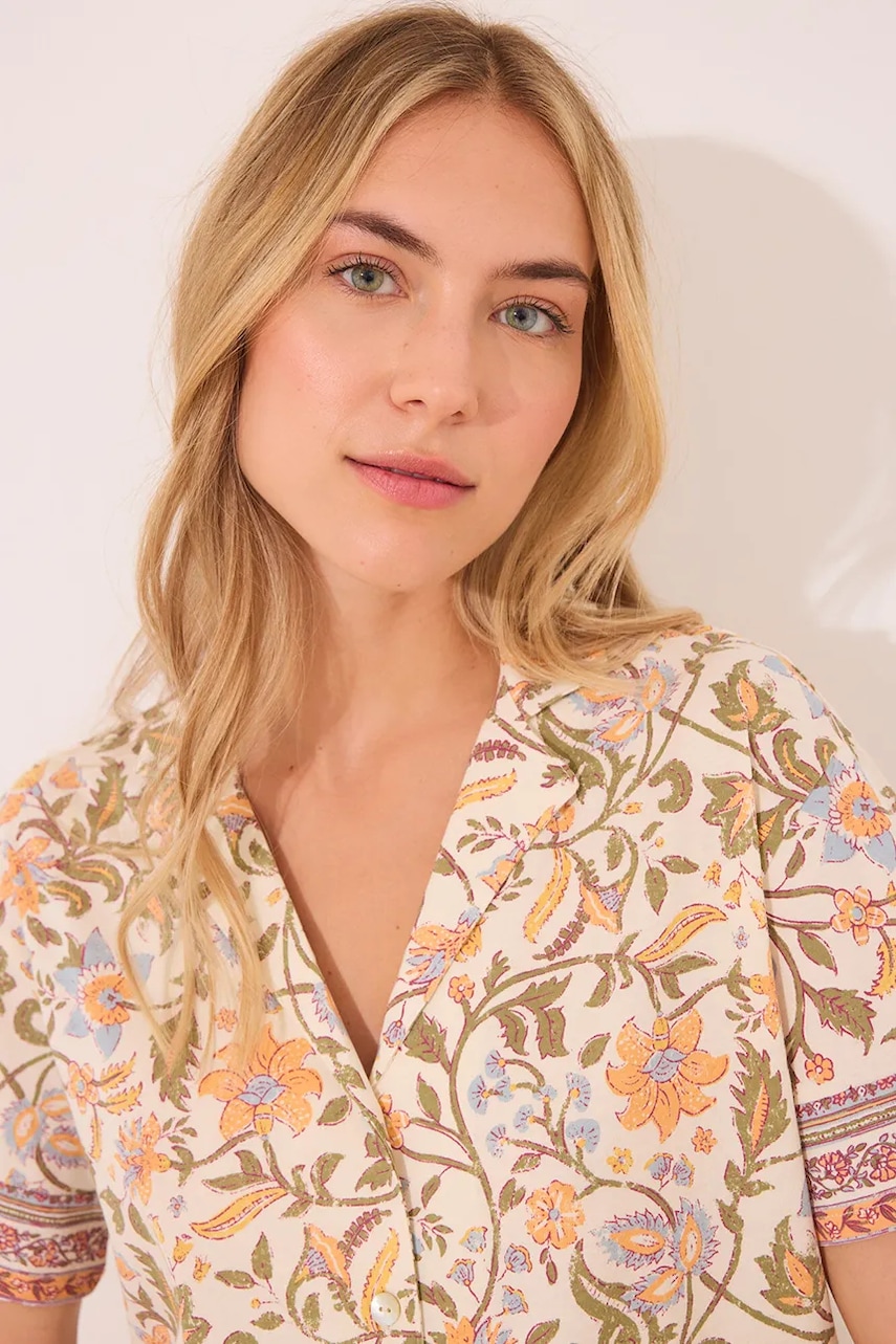 - W skład piżamy wchodzi koszula i szorty. - Wygodne zapięcie na guziki ułatwia zakładanie i zdejmowanie. - Krótki rękaw. - W pasie regulacja szerokości za pomocą troczków.