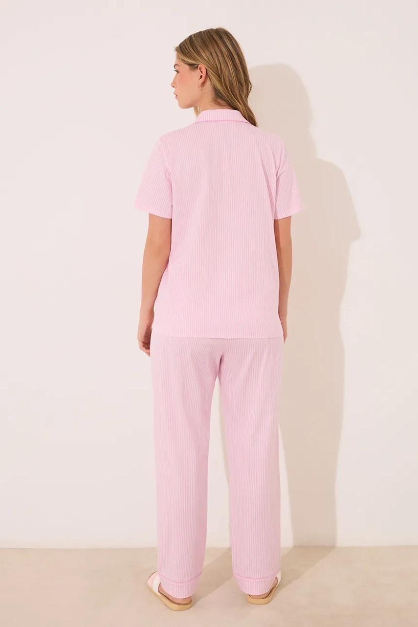 - Better Cotton Initiative. Produkty, oznaczone tym znakiem, zawierają przynajmniej 50% bawełny pochodzącej od sprzedawcy lub marki, należącej do inicjatywy Better Cotton oraz inwestującej w rozwój BCI. - Prosty, nie blokujący ruchów fason. - W skład piżamy wchodzi koszula i spodnie. - Krótki rękaw. - Model z kołnierzykiem. - Zapięcie na guziki. - Wsuwana kieszonka na piersi. - W pasie elastyczna listwa z troczkami. - Cienki materiał.