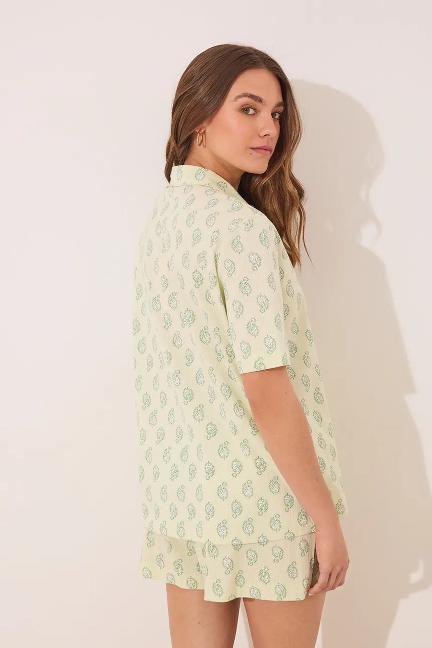- Better Cotton Initiative. Produkty, oznaczone tym znakiem, zawierają przynajmniej 50% bawełny pochodzącej od sprzedawcy lub marki, należącej do inicjatywy Better Cotton oraz inwestującej w rozwój BCI. - Prosty, nie blokujący ruchów fason. - W skład piżamy wchodzi koszula i szorty. - Wygodne zapięcie na guziki ułatwia zakładanie i zdejmowanie. - Krótki rękaw. - Model z kołnierzykiem. - W pasie elastyczna listwa z troczkami. - Cienki materiał.