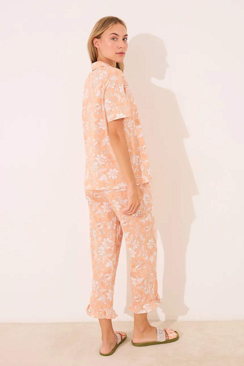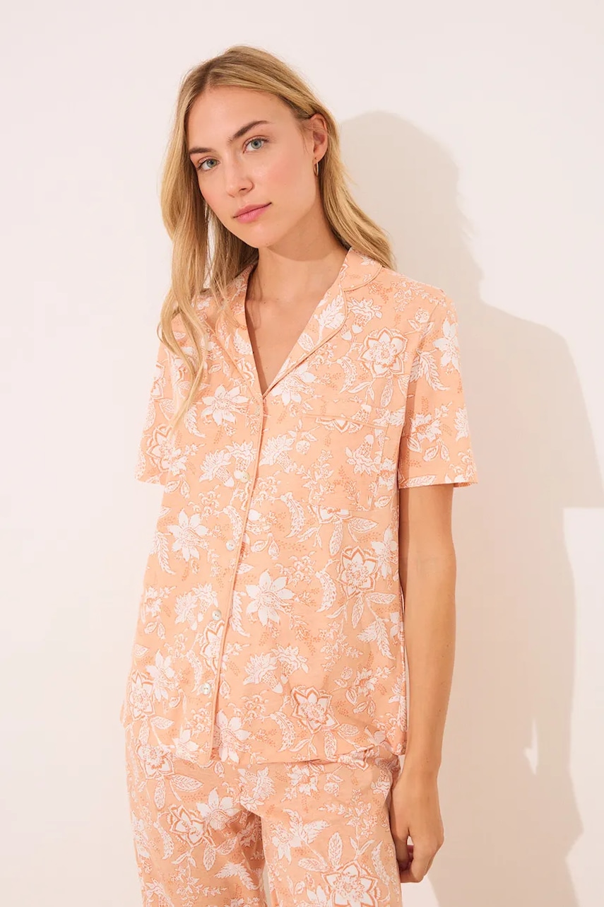 - Better Cotton Initiative. Produkty, oznaczone tym znakiem, zawierają przynajmniej 50% bawełny pochodzącej od sprzedawcy lub marki, należącej do inicjatywy Better Cotton oraz inwestującej w rozwój BCI. - W skład piżamy wchodzi koszula i spodnie. - Wygodne zapięcie na guziki ułatwia zakładanie i zdejmowanie. - Krótki rękaw. - W pasie elastyczna listwa z troczkami. - Prosty, nie blokujący ruchów fason.