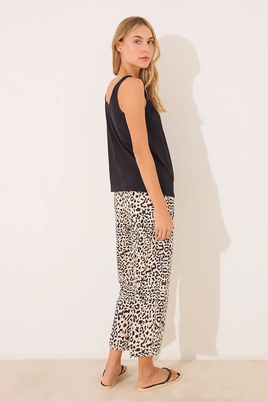 - Better Cotton Initiative. Produkty, oznaczone tym znakiem, zawierają przynajmniej 50% bawełny pochodzącej od sprzedawcy lub marki, należącej do inicjatywy Better Cotton oraz inwestującej w rozwój BCI. - Prosty, nie blokujący ruchów fason. - W skład piżamy wchodzi top i spodnie. - Ozdobny, spiczasty dekolt. - Model na ramiączkach. - W pasie elastyczna listwa z troczkami. - Cienki materiał.