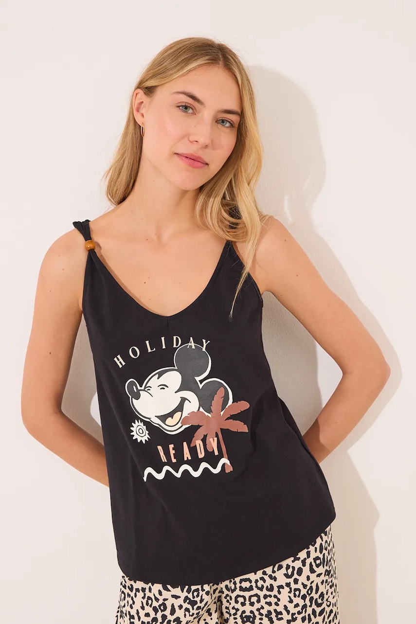 women'secret piżama bawełniana MICKEY damska kolor czarny bawełniana 3139914