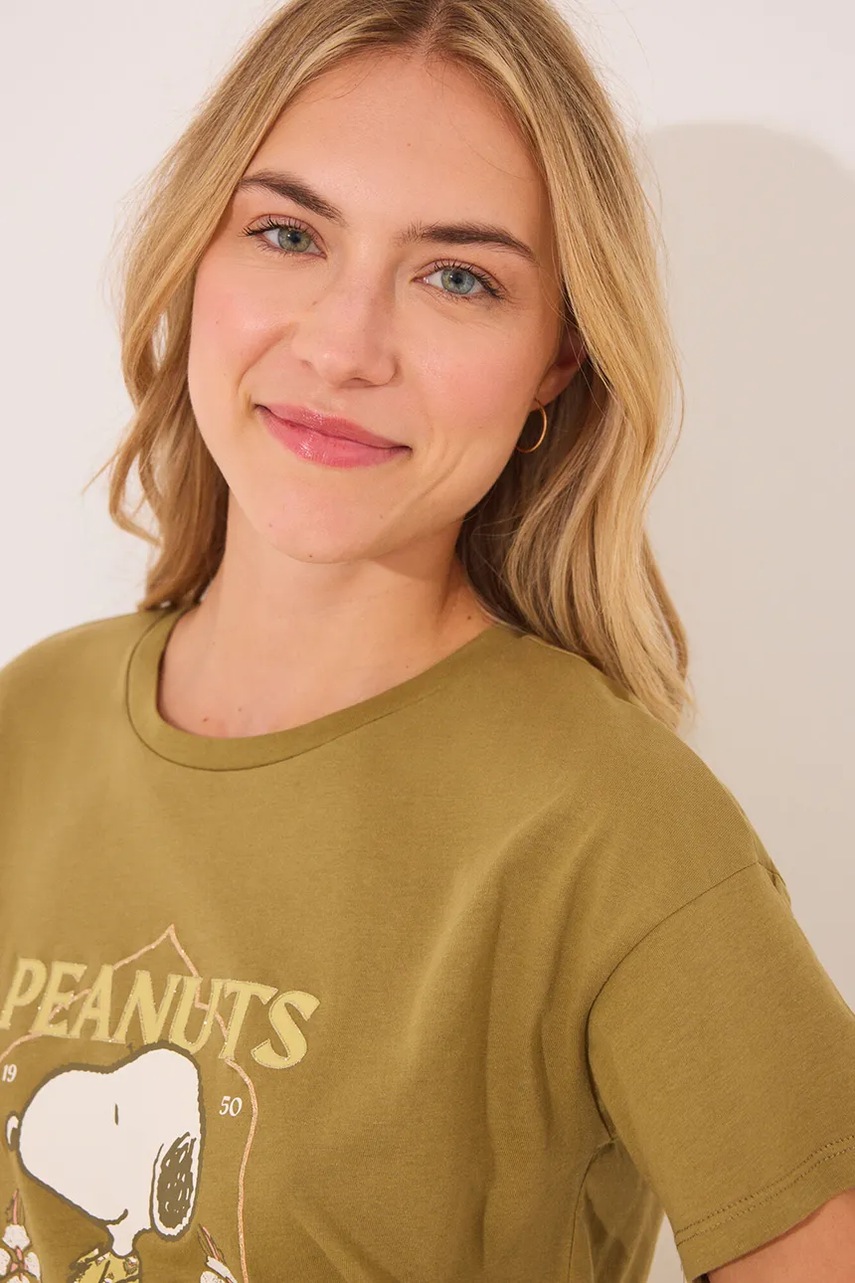 women'secret piżama bawełniana SNOOPY damska kolor zielony 3139904